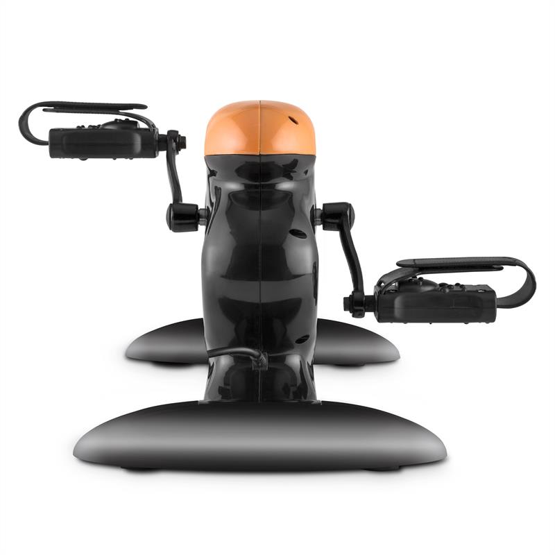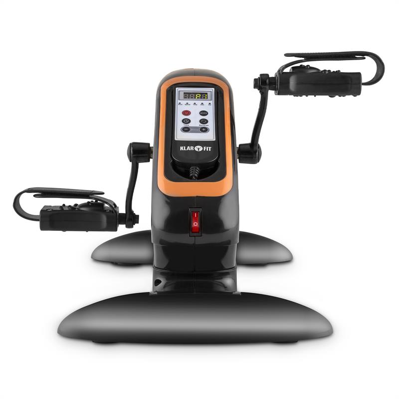 Zariadenie Cycloony MiniBike od spoločnosti Klarfit je ideálne posilňovacie zariadenie pre tých, ktorí majú málo priestoru alebo chcú počas sedavých činností urobiť niečo dobré pre svoje telo. Úplne jednoducho a nenútene trénujete Vaše svalstvo nôh a rúk – bez ohľadu na to, či ste v práci alebo doma. Vďaka motorovej prevádzke nie je nutné našľapovanie, nemusíte sa sústrediť na cvičenie. Keď sa zariadenie dá do pohybu, otáčajú sa pedále konštantnou rýchlosťou a zapájajú automaticky svaly na rukách a nohách používateľa. Rovnomerné pohyby posilňujú nielen svalstvo a vytrvalosť, ale sú tiež vhodné pre ideálny a šetrný tréning srdca, obehového systému a pohybového aparátu. Prenosné zariadenie môže byť so svojimi 4,6 kg premiestnené na ľubovoľné miesto, pohodlne sa vojde pod stôl alebo pred televízor v obývacej izbe. Po minútach nastaviteľné tréningové jednotky (od 5 minúty) a individuálne nastaviteľných 12 stupňov rýchlosti robia zo zariadenia Cycloony ideálny tréningový bicykel na medzičasy, ale aj pre dlhšie tréningové sekvencie. Používajte motorom poháňané zariadenie MiniBike v sede alebo v ľahu pre trénovanie rôznych svalových skupín nôh alebo zariadenie umiestnite na stôl pre zaťaženie svalov paží. Vďaka možnosti chodu vpred alebo vzad možete zapojiť rôzne pohyby pre dosiahnutie optimálnych výsledkov. S motorovou prevádzkou je zariadenie Cycloony od spoločnosti Klarfit veľmi dobrým pohybovým trenažérom: Jednoduché nastavovanie vhodnej rýchlosti a automatické otáčanie pedálov zabezpečí cielené a rovnomerné pohyby končatín. Upínacie popruhy na pedáloch zabezpečia, že nohy alebo ruky budú optimálne spevnené a neskĺznu počas prevádzky. Riadenie prebieha pomocou diaľkového ovládania, pripojeného k zariadeniu pomocou kábla. Viac ako šesť jasne označených tlačidiel je určených na zvýšenie alebo zníženie rýchlosti otáčania, zmenu smeru otáčania alebo pre nastavenie trvania tréningu. Stlačením tlačidla režimu sa dá ovládať LCD displej pre voliteľné zobrazenie zostávajúceho času tréningu, virtuálne absolvovanej vzdialenosti, zvolenej rýchlosti a doposiaľ spotrebovaných kalórií. Vezmite, prosím, na vedomie, že zariadenie sa dodáva v čiastočne zmontovanom stave. Aj menej zruční však zmontujú zariadenie pomocou dodávaného náradia počas 5-10 minút. Dostupné farby: bielo-modrá , čierno-oranžová (produkt 10026400)