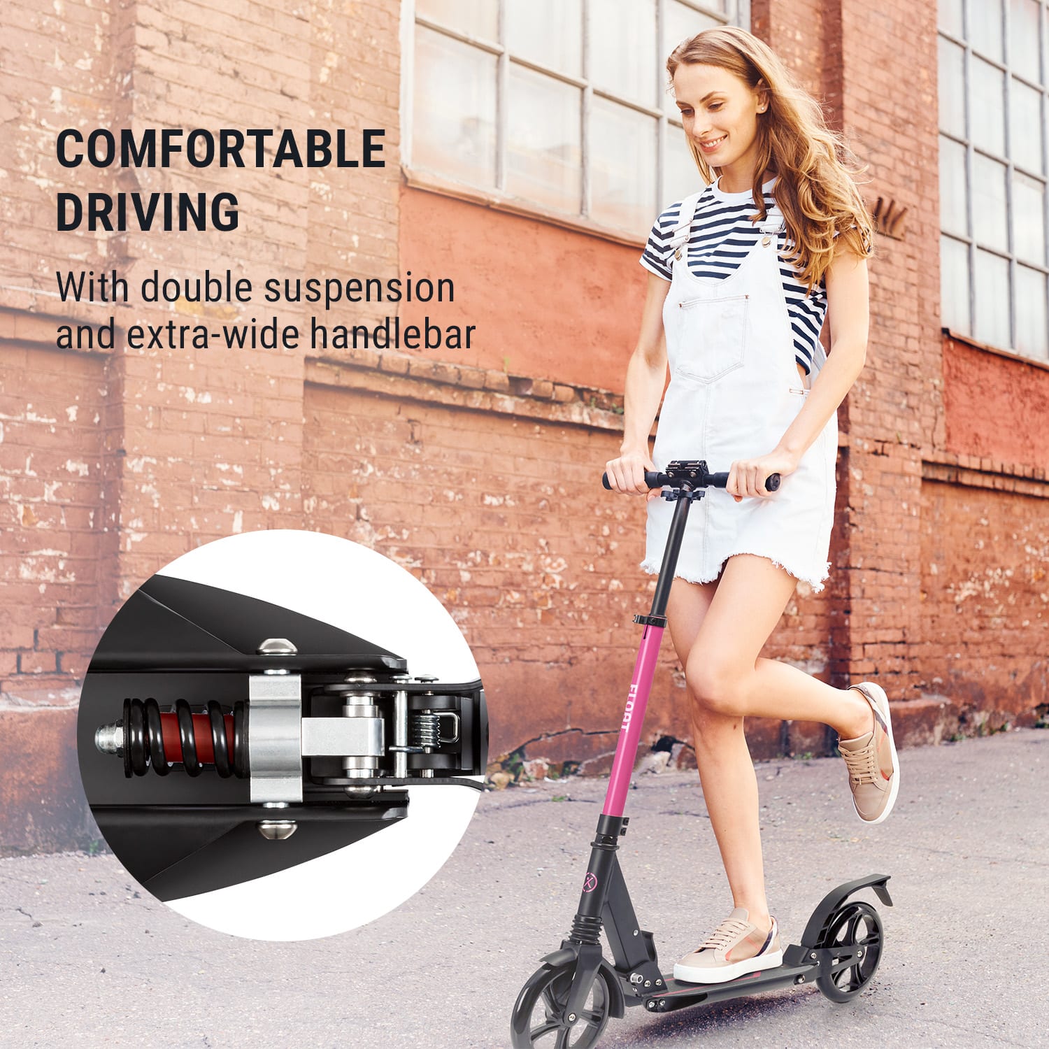 Kolobežka Klarfit Float ťa prenesie rýchlo a uvoľnene z bodu A do bodu B a je ideálnym dopravným prostriedkom na menšie trasy v meste.Kolobežka ponúka plnú rýchlosť a bezproblémový komfort jazdy vďaka svojim 200 mm PU kolieskam s ložiskami ABEC 7. Na zníženie rýchlosti alebo rýchle zabrzdenie slúži spoľahlivá nožná brzda, pohodlne ovládaná nohou v zadnej časti kolobežky. Protišmyková nášľapná plocha a mäkké gumové rukoväte „AS-soft grips“ sa postarajú o potrebnú oporu, pruženie vpredu a vzadu zabezpečuje po celú dobu bezproblémové posúvanie vpred.Kolobežka je maximálne flexibilná: výškovo nastaviteľné riadidlá v 3 úrovniach sa dajú prispôsobiť ľubovoľnej veľkosti tela a so šírkou 37,5 cm sú riadidlá ideálne aj pre dospelých. Po použití sa dá kolobežka v niekoľkých sekundách pár pohybmi zložiť systémom jedného kliknutia a pohodlne sa dá preniesť pomocou pripevneného popruhu na rameno. Vďaka svojej robustnej konštrukcii môže kolobežka uniesť maximálnu hmotnosť 100 kg.Vynikajúca na cestu do práce, na vysokú školu alebo do školy: kolobežka Float od spoločnosti Klarfit je ideálnym sprievodcom pre každého.