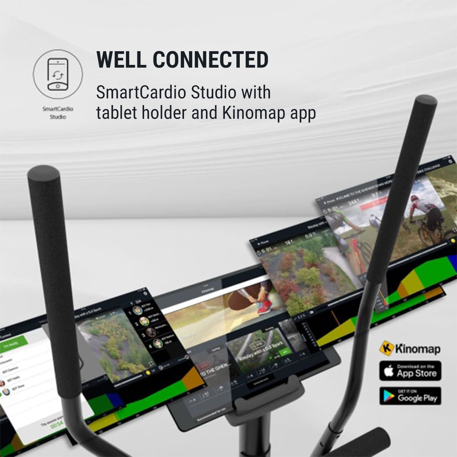 Krosový trenažér Klarfit Myon Cross je ergonomický domáci trenažér, ktorý zvýši výkonnosť vášho tela a znovu poriadne rozhýbe váš kardiovaskulárny systém. Ako pravý crossový trenažér ponúka zariadenie workouty, ktoré sú šetrné ku kĺbom, precvičia celé telo, ruky, nohy, zadok a ramená. Integrovaný tréningový počítač umožňuje sledovanie vašich výkonov počas tréningu. Na prehľadnom displeji sa okrem času zobrazuje rýchlosť, spálené kalórie a vzdialenosť. Máte teda možnosť kedykoľvek získať presný stav vašej fyzickej kondície. V pohodlných držadlách je zabudovaný prístroj na meranie pulzu, ktorý poskytuje tréningovému počítaču aktuálne dáta o frekvencii pulzu, čo umožňuje efektívnu kontrolu výkonu. Nízky nástup poskytuje vysoký komfort, zatiaľ čo veľké, protišmykové nášľapné plochy sa postarajú o stabilitu. Stacionárne tyče krosového trenažéra s maximálnou hmotnosťou používateľa 100 kg sú na spodnej strane vybavené plastovými ochrannými krytmi, ktoré chránia povrch pred poškodením. Fitnes je skutočne zábava: domáci trenažér Myon Cross od spoločnosti Klarfit kombinuje všetky dôležité komponenty pre produktívny a zároveň šetrný tréning v jednom mobilnom športovom zariadení.