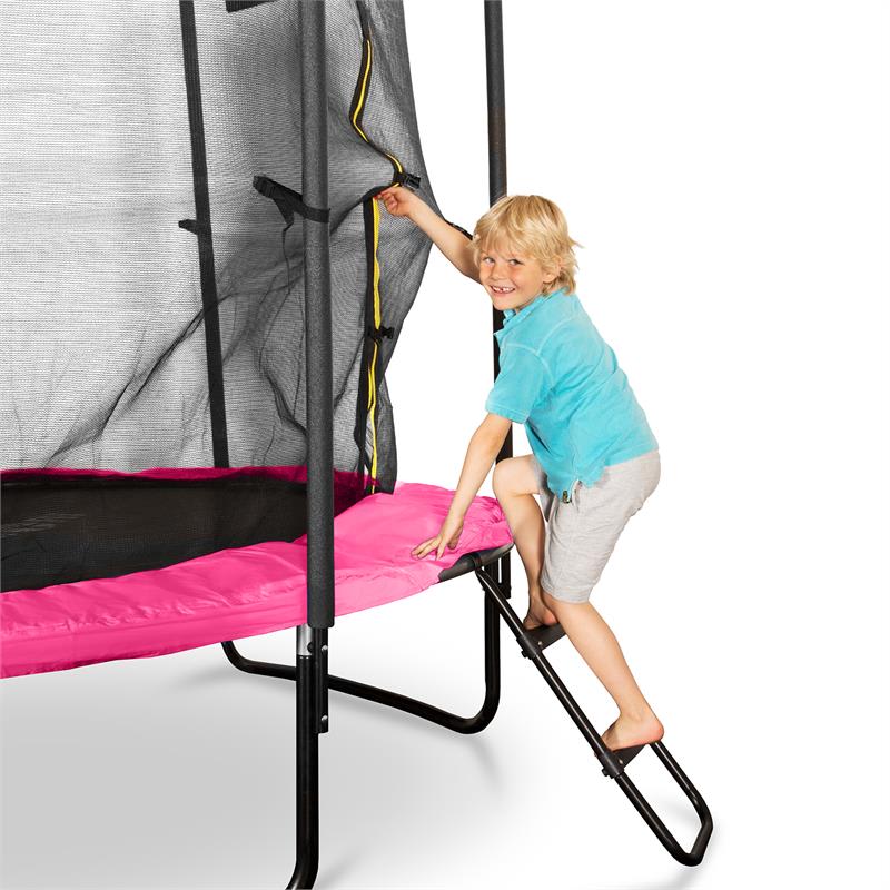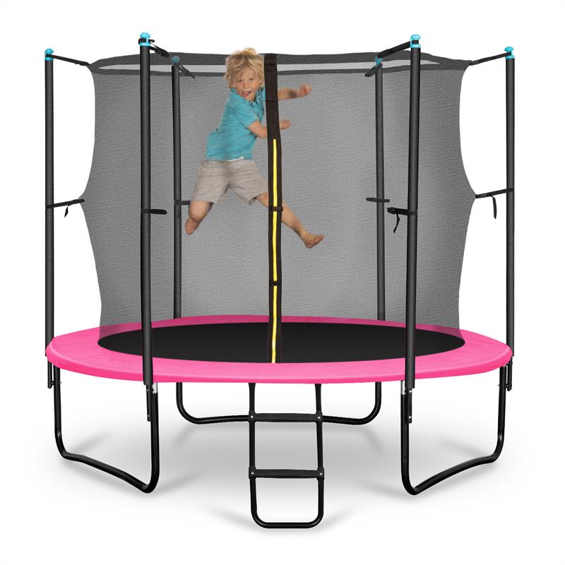 Skákanie na trampolíne je zábava a šport, zažite to sami s trampolínou Klarfit Rocketgirl 250!Z dobrého dôvodu sa stáva skákanie na trampolíne stále viac populárne. Najmä pre najmenších z rodiny je faktor zábavy obrovský. Deti a rodičia môžu nájsť ideálnu možnosť, ako vytvoriť svojim deťom pohyb na čerstvom vzduchu – deti sú všeobecne plné energie, chcú skákať, hopkať, vybiť svoju energiu. Okrem toho používanie trampolíny zvyšuje kondíciu a koordináciu každej vekovej skupiny, čím sa podporuje motorika a zmysel pre rovnováhu. Skákanie tiež posilňuje svaly a plynule zvyšuje pohyblivosť – bez nadmernej záťaže kĺbov. Priemer skákacej plochy dva a pol metra ponúka rozsiahly priestor pre malé aj veľké skoky.Pre zariadenie Rocketgirl 250 prepracoval a zlepšil Klarstein osvedčený dizajn svojich trampolín. V popredí stála predovšetkým bezpečnosť používateľov. Pozdvihnúť treba predovšetkým nový vstupný rebrík, ktorého priečky boli nahradené protišmykovými plastovými schodíkmi. Tieto sa na slnku menej zohrievajú a ponúkajú so svojou hladkou, protišmykovou plochou príjemný a bezpečný vstup na trampolínu. Tri dvojité nohy sa starajú o pevné a stabilné umiestnenie, pričom špeciálna konštrukcia stabilitu zvyšuje. Základným predpokladom je však v každom prípade rovný podklad. Voliteľná bezpečnostná sieť je odolná a ponúka dodatočnú ochranu pred zraneniami. V protiklade k mnohým porovnateľným produktom je sieť zariadenia Rocketgirl od Klarstein pripevnená zvnútra, vďaka čomu nemožno z trampolíny spadnúť alebo sa dostať do kontaktu s pružinami. Držadlá siete sú samozrejme polstrované.Okrem špeciálnych bezpečnostných prvkov zaujme trampolína Rocketgirl kvalitným spracovaním. Podložka na skákanie je vyrobená z polypropylénu a má ochranný UV povrch pre zvýšenú životnosť. Najmä v silnom slnečnom žiarení v letnom období sa to oplatí. 48 pozinkovaných pružín ponúka nezabudnuteľný zážitok zo skákania. Pružiny sú skryté pod veľkým ružovým polstrovaním, ktoré zabráni priškripnutiu alebo zošmyknutiu. Kovový rám aj vstupný rebrík sú práškovo lakované, čím sa dizajn a životnosť kovových dielov ešte zlepšujú. Spolu s krytom proti dažďu je zariadenie Rocketgirl od spoločnosti Klarfit odolné proti poveternostným vplyvom a môže byť použité aj v silnom daždi na svojom obvyklom mieste. Príjemný kontrast ružového polstrovania a čiernych dielov rámu robia športovú a voľnočasovú trampolínu skutočnou ozdobou každej záhrady.Záhradná trampolína Klarfit Rocketgirl 250 je s maximálnou nosnosťou 150 kg k dispozícii takmer pre každého. Za daždivých dní sa dá športové zariadenie jednoducho ochrániť dodávaným krytom.Vezmite, prosím, na vedomie, že zariadenie je dodávané ako montážna sada. Ilustrovaný montážny návod a potrebný montážny materiál sú súčasťou dodávky.Dostupné farby a veľkosti: ružová 250 cm, ružová 366 cm (10027931), ružová 430 cm (10027934), modrá 250 cm (10027712), modrá 366 cm (10027929), modrá 430 cm (10027932), zelená 250 cm (10027713), zelená 366 cm (10027930), zelená 430 cm (10027933)