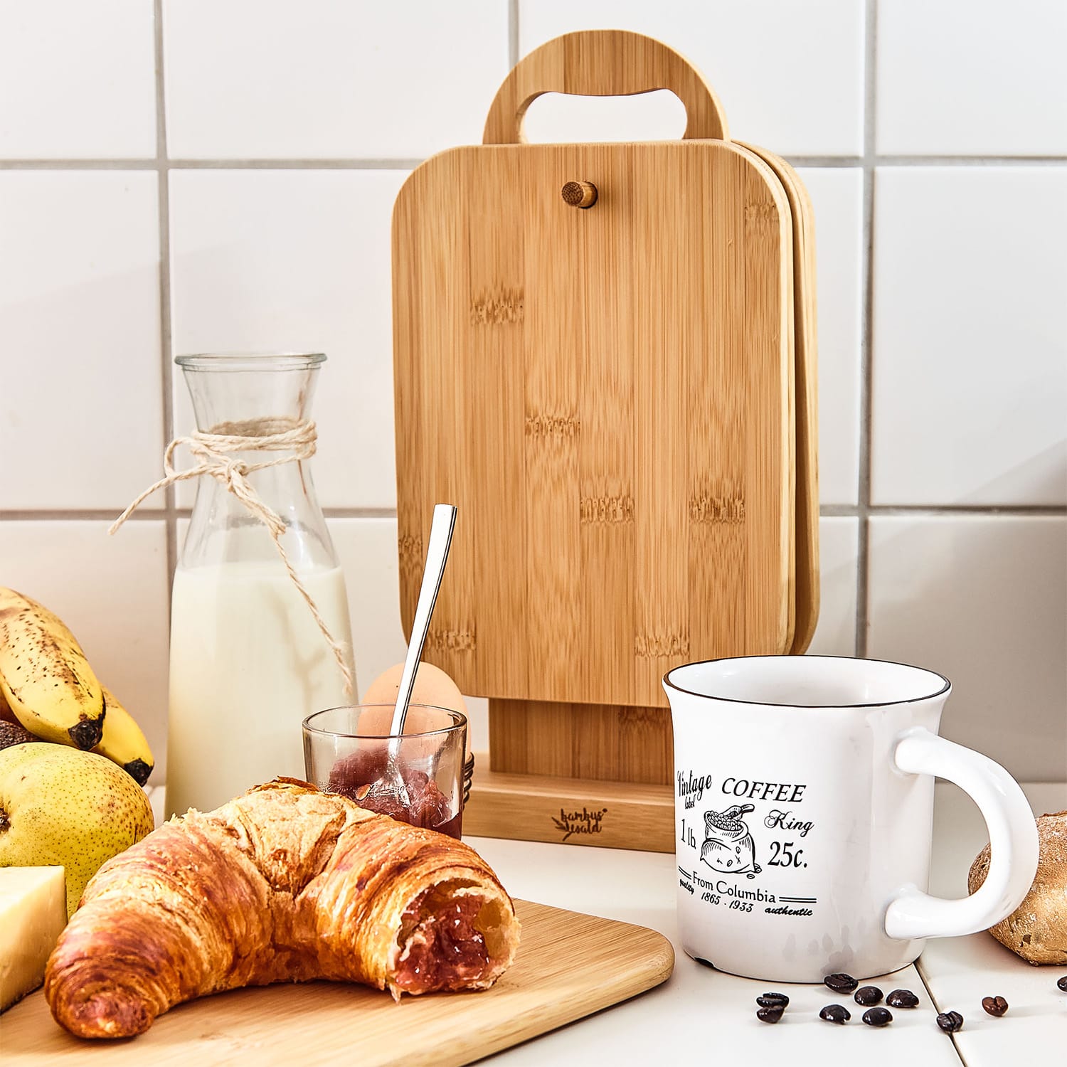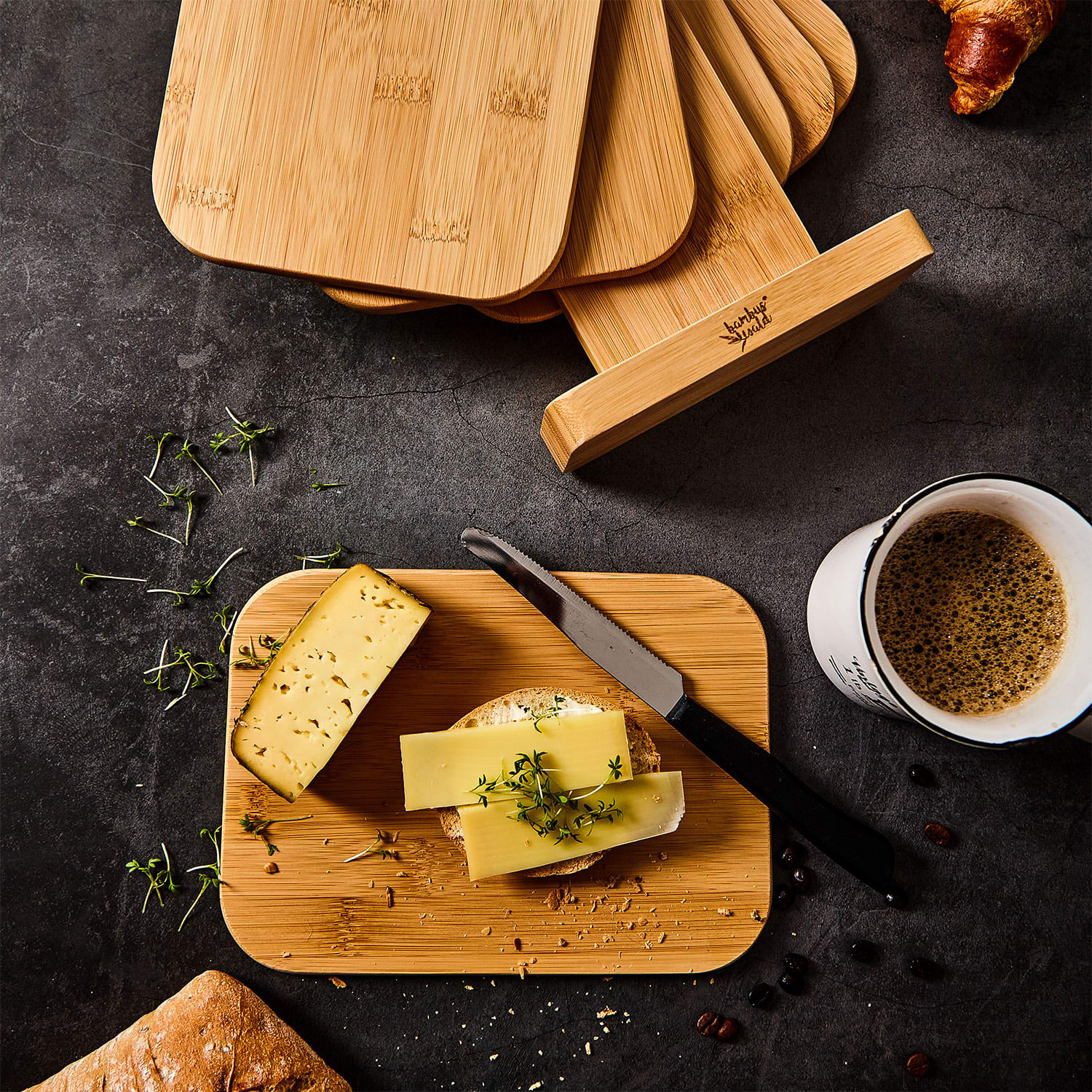Niekedy si s jednou jedinou doskou na krájanie nevystačíte! Pri príprave špecialít z chlebu a iných pochúťok ti prídu na pomoc naše ekologické raňajkové dosky od Klarstein bambuswald. Bambusové dosky na krájanie, prestieranie a servírovanie sú dobrou zero waste alternatívou, pretože sú kompostovateľné a recyklovateľné. 6 dielna súprava je dodávaná so stojanom na zavesenie.