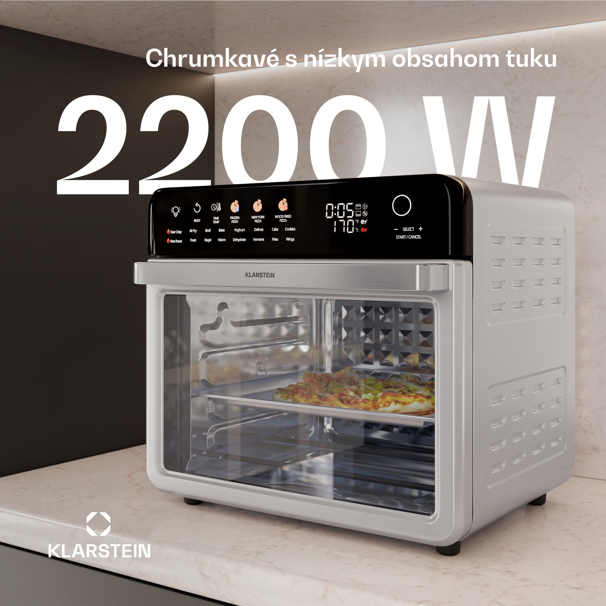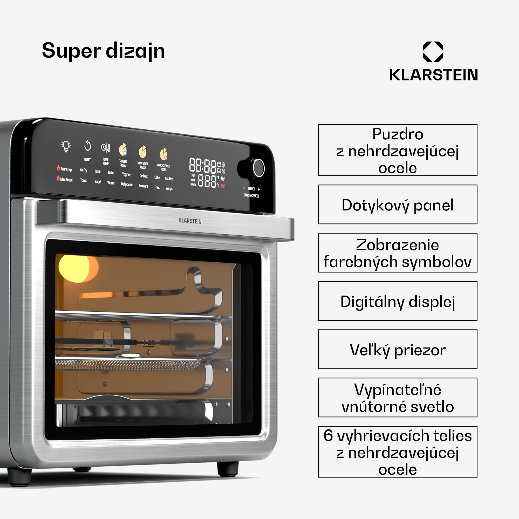 Klarstein AirGlaze Digital teplovzdušná fritéza, 2200 W, 19 programov, vrátane príslušenstva, ktoré možno umývať v umývačke riadu – Kúpiť