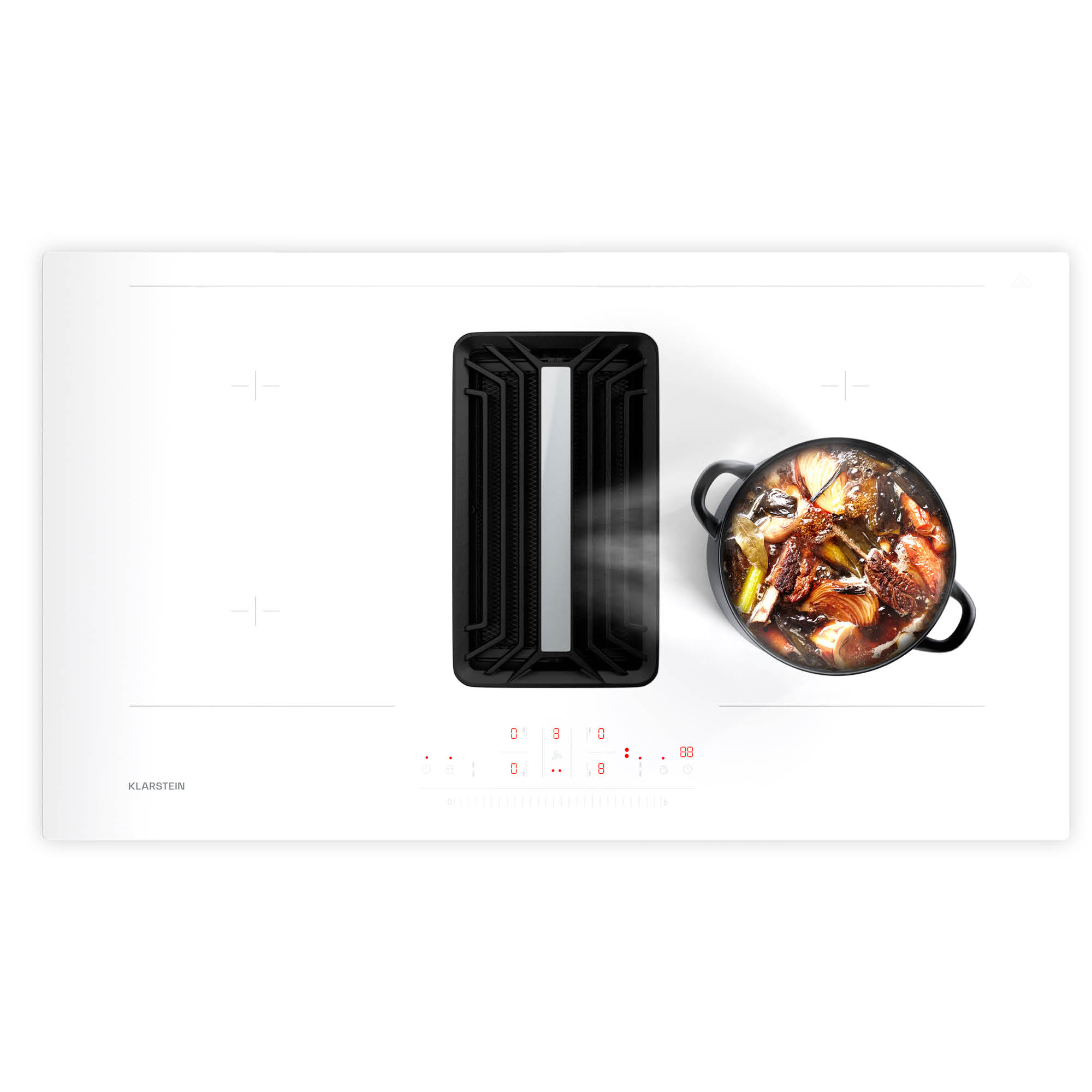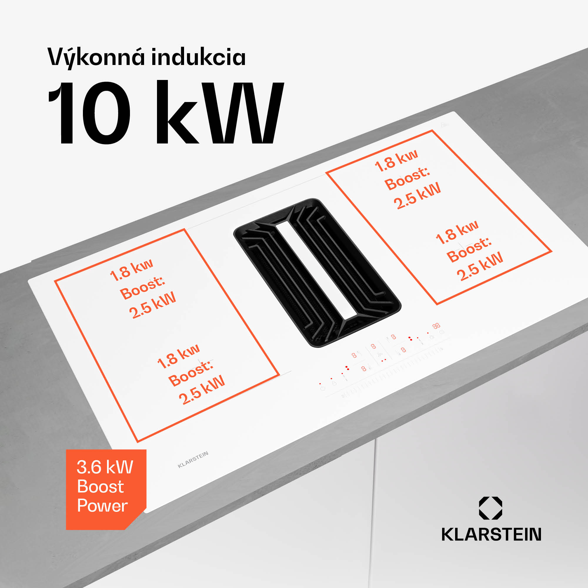 Priamo v strede, ako len popri tom: DownAir systém AirJet 90 od Klarstein prináša revolúciu do kuchyne tak, že priamo kombinuje svoju indukčnú varnú dosku s DownAir digestorom. Vyžaduje si len minimálny priestor 20 cm a je výkonnejší ako takmer všetky ostatné systémy. Indukčná varná doska DownAir Systému AirJet 90 od Klarstein prináša do vašej kuchyne štyri výkonné varné plochy. Vďaka systému VarioHeating možno dve varné zóny prakticky spojiť a vytvoriť tak jednu veľkú flexibilnú zónu, napríklad pre rajnice alebo veľké hrnce a panvice. Každú jednotlivú zónu možno tiež vďaka funkcii Booster zosilniť, aby sa zvýšil jej výkon.Výkon varných zón ako aj DownAir systému ovládate pomocou dotykovej plochy. Všetky ovládacie prvky sú priamo zabudované do sklenenej plochy, tak aby žiadne gombíky nerušili bezchybný vzhľad. Detekcia hrnca, funkcia časovača a detská poistka dokonale dopĺňajú rozsah použitia varnej dosky.Kúpte si teraz Klarstein AirJet 90 DownAir System a prineste do svojej kuchyne revolučnú účinnosť a dizajn!Upozornenie: Odporúčame, aby montáž systému Klarstein Full House Down Air System vykonával kvalifikovaný personál v súlade s návodom na obsluhu.Upozornenie: Farba produktu sa môže mierne líšiť od zobrazenia na fotografii.