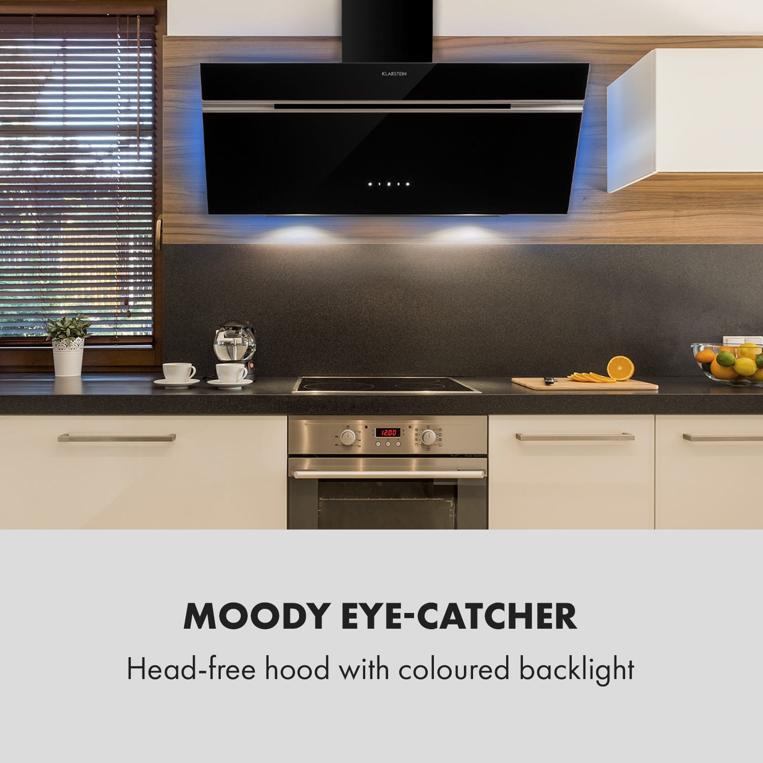 Klarstein Alina, digestor, 90 cm, nástenný, 600m³/h, LED displej, LED, čierny – Kúpiť