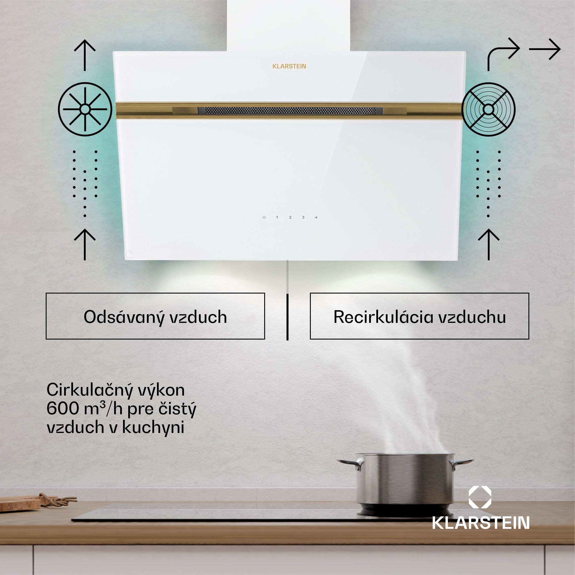 Teraz do kuchyne prichádza lesk a príjemná atmosféra – a digestor Klarstein Alina navyše eliminuje paru a pachy jedla. Digestor Klarstein Alina sa rýchlo vysporiada s oparom i bublaním nad varnou doskou. Vďaka trom stupňom výkonu možno jeho pracovný výkon ľahko prispôsobiť priebehu varenia. Na najvyššej úrovni odsáva z kuchyne až 600 m³ vzduchu za hodinu a zvládne aj prípravu niekoľkých chodov. Vďaka najmodernejšej technológii zostáva hladina hluku a spotreba energie príjemne nízka – iba 52 dB a trieda energetickej účinnosti A. Digestor Klarstein Alina je mimoriadne atraktívny nielen svojim elegantným vzhľadom, ale aj voliteľným ambientným osvetlením s deviatimi rôznymi farbami. Tento nástenný digestor s voľným priestorom na hlavu dodá každej kuchyni vlastnú špeciálnu atmosféru. Dve zapínateľné LED lampy nad varnou doskou tiež umožňujú kedykoľvek jasný pohľad na panvice a hrnce – a cez elegantný sklenený povrch nič neprenikne. Okrem integrovaného dekoračného prvku z nehrdzavejúcej ocele, všetky ovládacie prvky sú integrované priamo do povrchu ako dotykový panel.Všetok potrebný materiál pre montáž na stenu, výfuková hadica a vhodný kryt komína sú súčasťou dodávky. Pomocou dvoch filtrov s aktívnym uhlím možno digestor jednoducho prestavať na recirkulačný režim.Elegantný luxus a ekologický výkon pre kuchyňu: S digestorom KlarsteinAlina získajú varné dosky jedinečnú atmosféru a kuchyne čistý vzduch.Vneste teraz do svojej kuchyne štýlový pôvab a čerstvý vzduch – s digestorom Klarstein Alina !