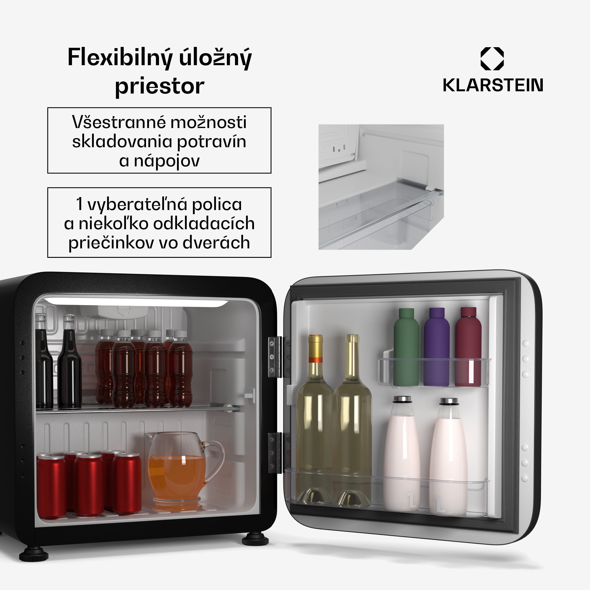 Mini chladnička Klarstein Audrey Evo kombinuje očarujúci retro dizajn s modernou technológiou. S objemom 43 litrov, nízkou hlučnosťou a flexibilnými možnosťami inštalácie je dokonalým doplnkom štýlových obytných a pracovných priestorov.Mini chladnička Audrey Evo od spoločnosti Klarstein ponúka napriek svojej kompaktnej veľkosti dostatok úložného priestoru. Odnímateľná polica a praktická priehradka vo dverách umožňujú prehľadné usporiadanie nápojov a občerstvenia. Vďaka nastaviteľným nožičkám a obojstranným dverám je chladnička mimoriadne prispôsobivá – ideálna do miestností s obmedzeným priestorom, ako sú hotelové izby, kancelárie alebo pivnice na párty.Vintage dizajn vnesie do každého prostredia nádych nostalgie. Chladnička pracuje s výkonným kompresorovým chladiacim systémom a vďaka mechanickému termostatu umožňuje presnú reguláciu teploty od 0 °C do 10 °C. S prevádzkovou hlučnosťou iba 40 dB je dostatočne tichá na to, aby nerušila ani pri odpočinku, ani pri práci.Kúpte si mini chladničku Klarstein Audrey Evo – kompaktná, tichá a štýlová do každého prostredia.