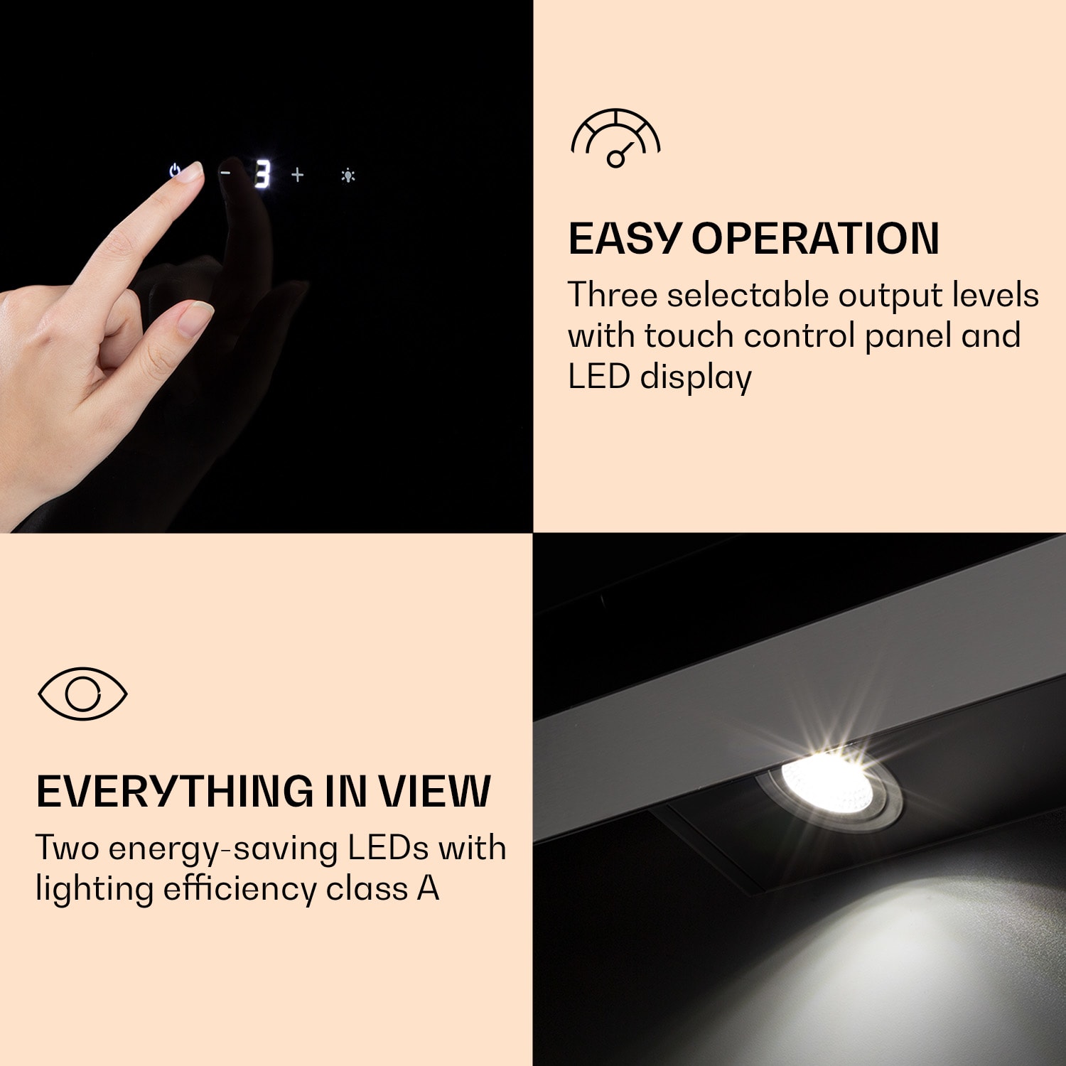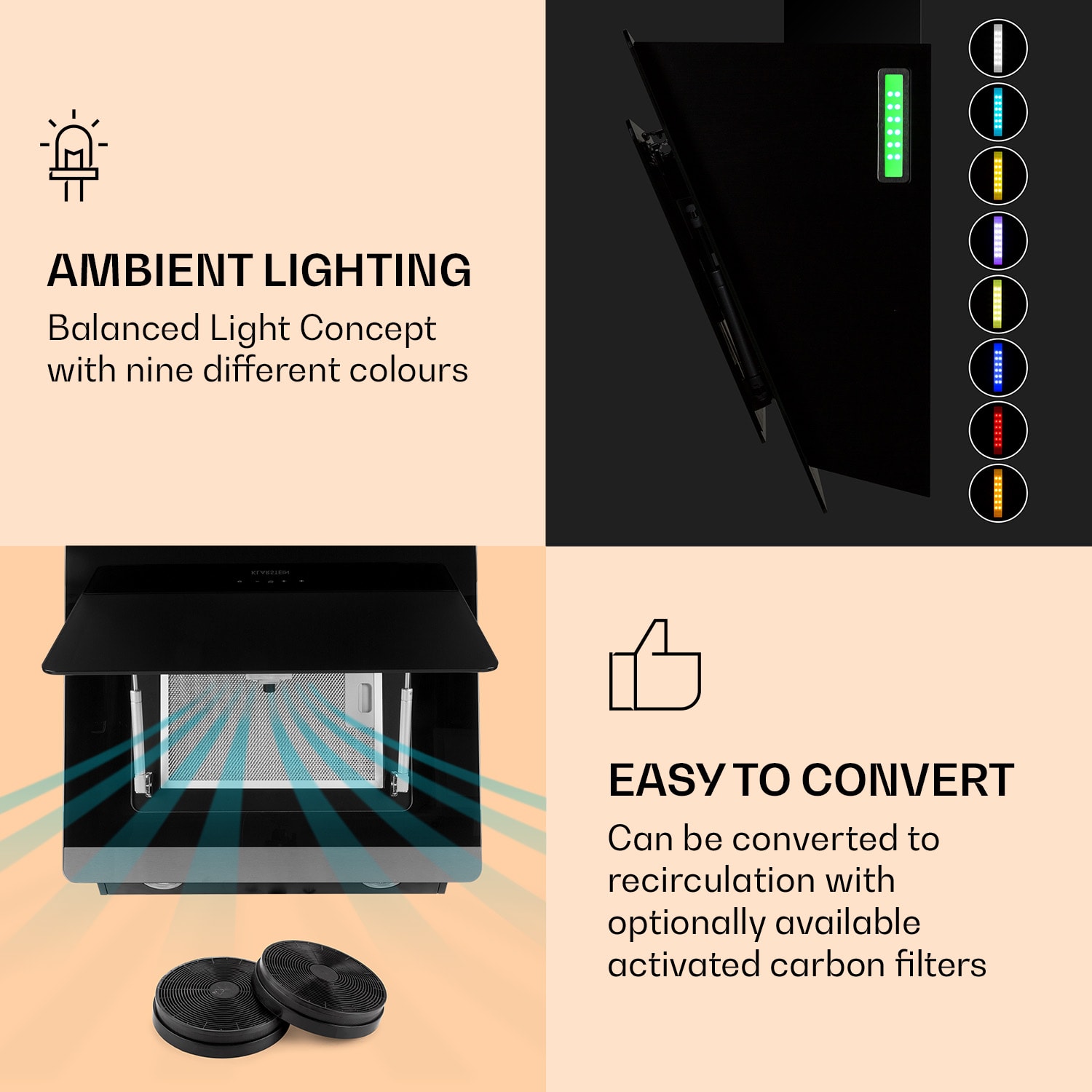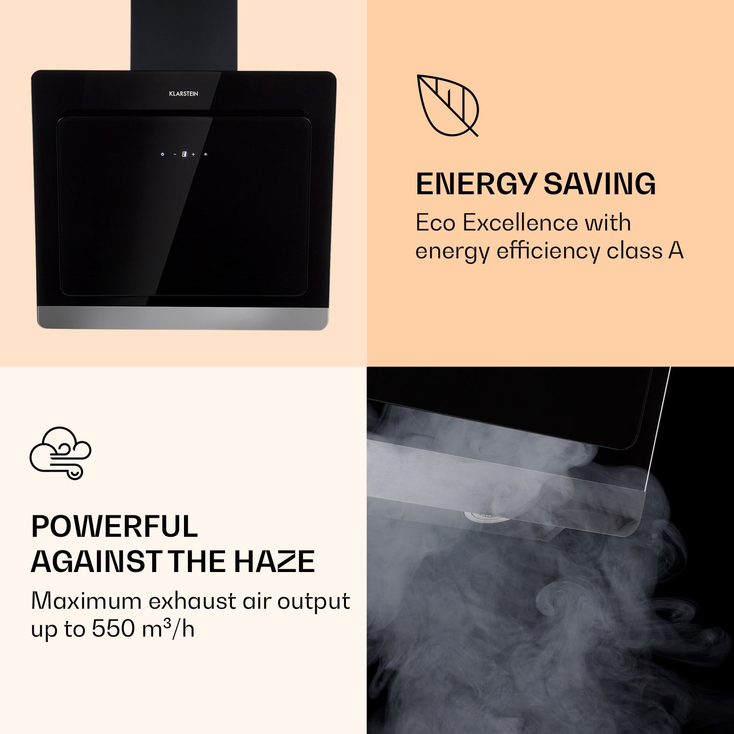 Klarstein Aurora Eco 60, digestor, 60 cm, nástenný, 550 m³/h, A+, dotykové ovládanie, čierny – Kúpiť