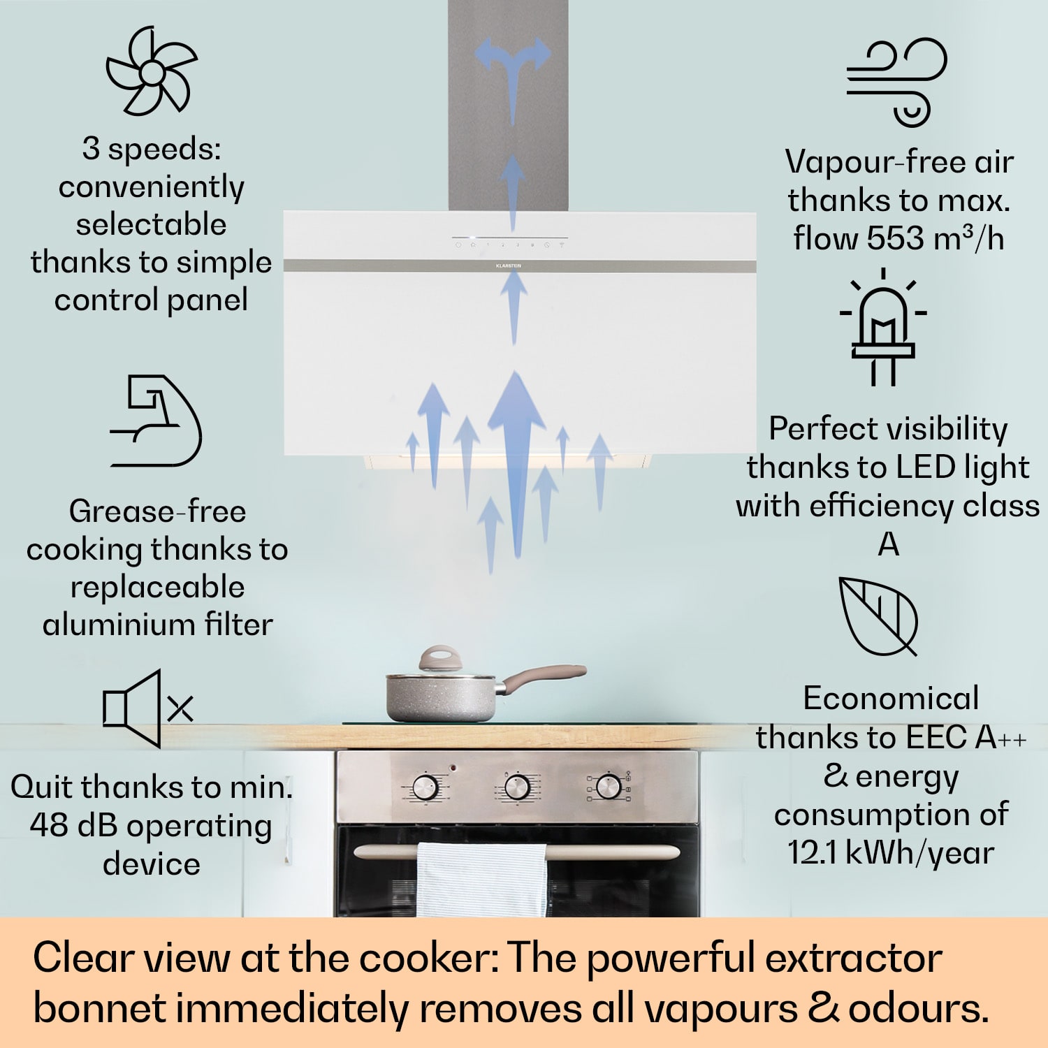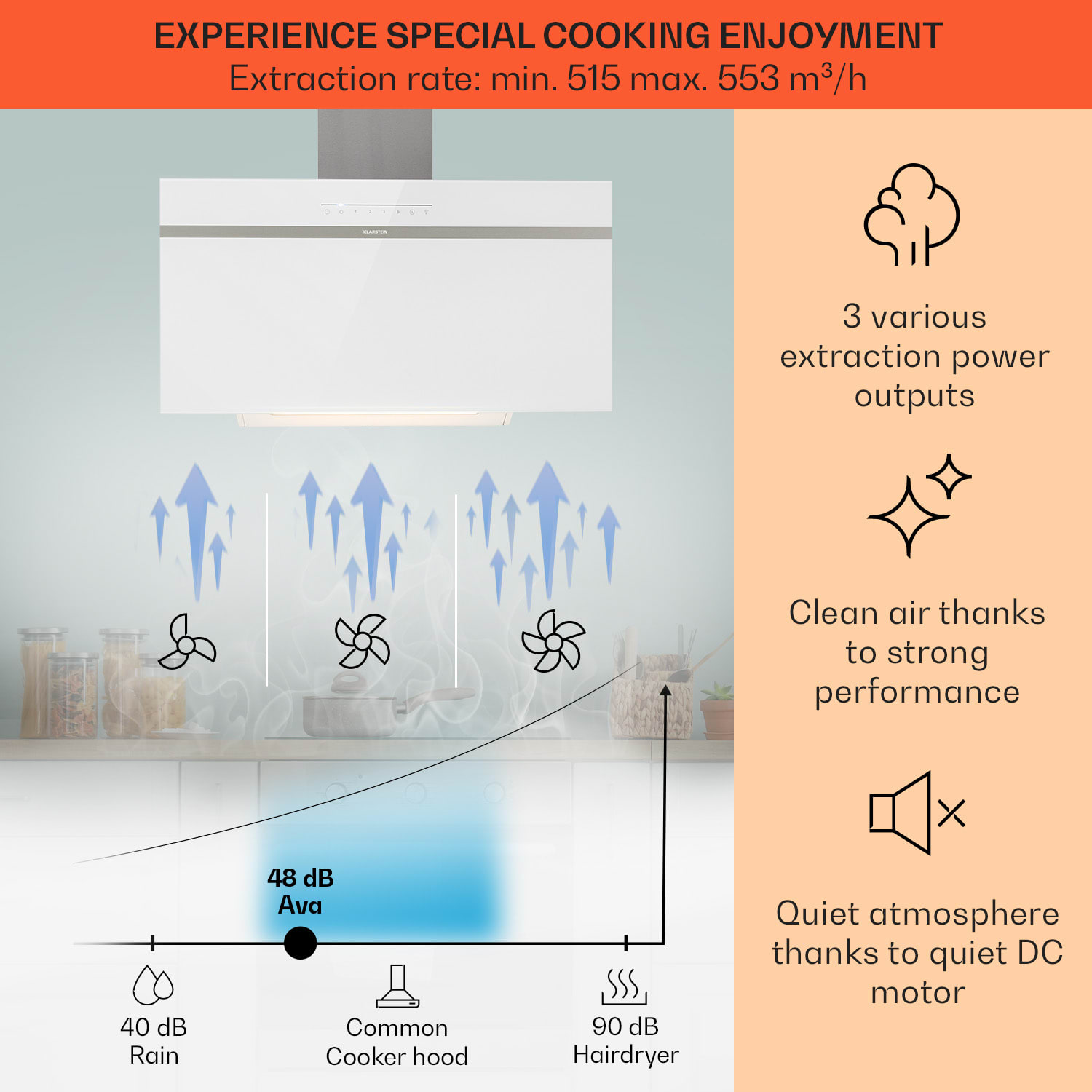 Klarstein Ava 90 Smart, digestor, 90 cm, nástenný, WiFi, A++, 515 m³/h, dotykový displej – Kúpiť