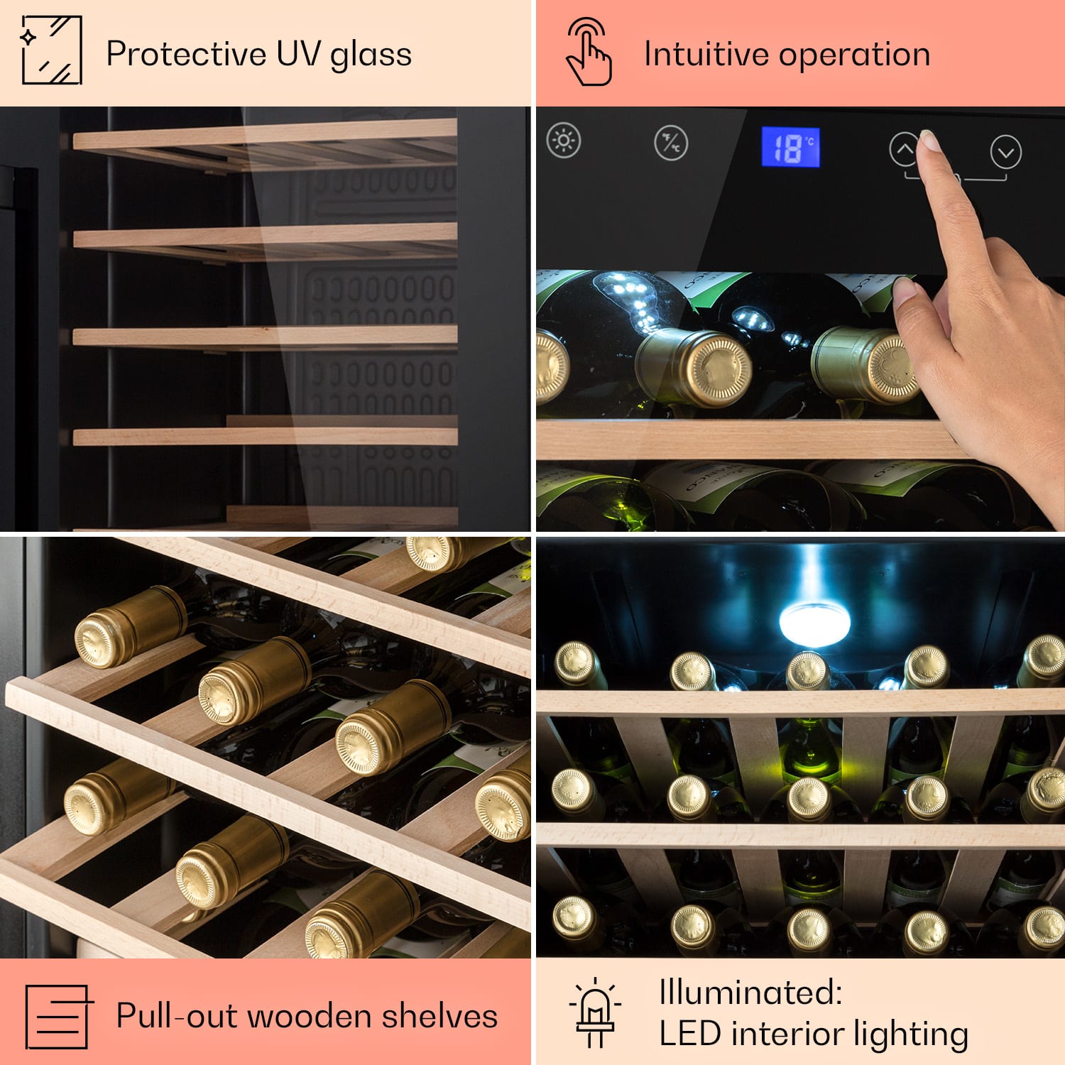 Z lásky k vínu: vinotéka Barossa 32 Uno od Klarstein zaisťuje ten najlepší pôžitok z vína tým, že fľašiam vína zabezpečí správnu teplotu na pitie. Sklenené predné dvierka sa postarajú o dômyselnú prezentáciu vínnych pokladov, zatiaľ čo zapínateľné vnútorné osvetlenie prezentuje uložené fľaše. Vďaka tomu je vinotéka štýlovou ozdobou nielen v domácnosti, ale aj v baroch a reštauráciách.