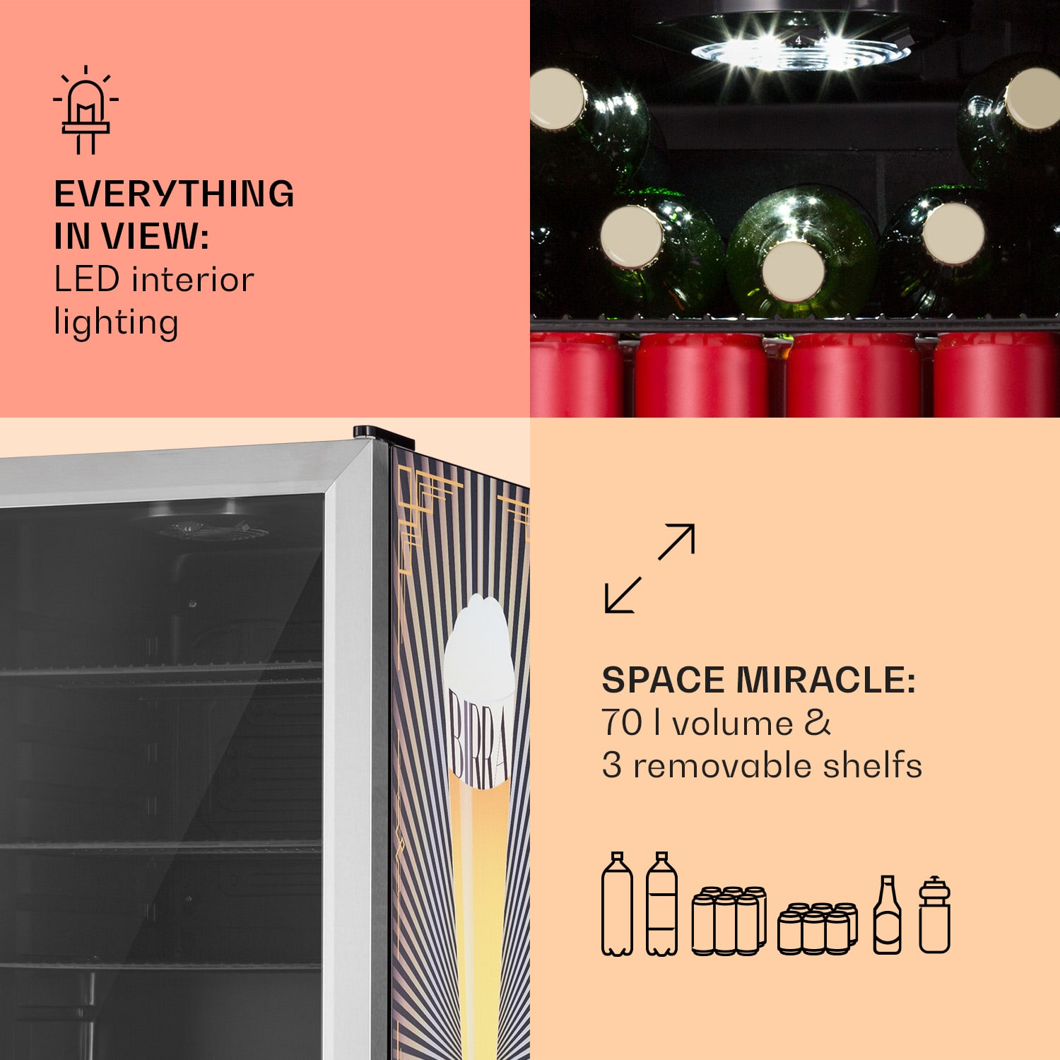 Klarstein Beersafe 70 Birra Edition, chladnička, 70 litrov, 3 police, sklenené dvere, nehrdzavejúca oceľ