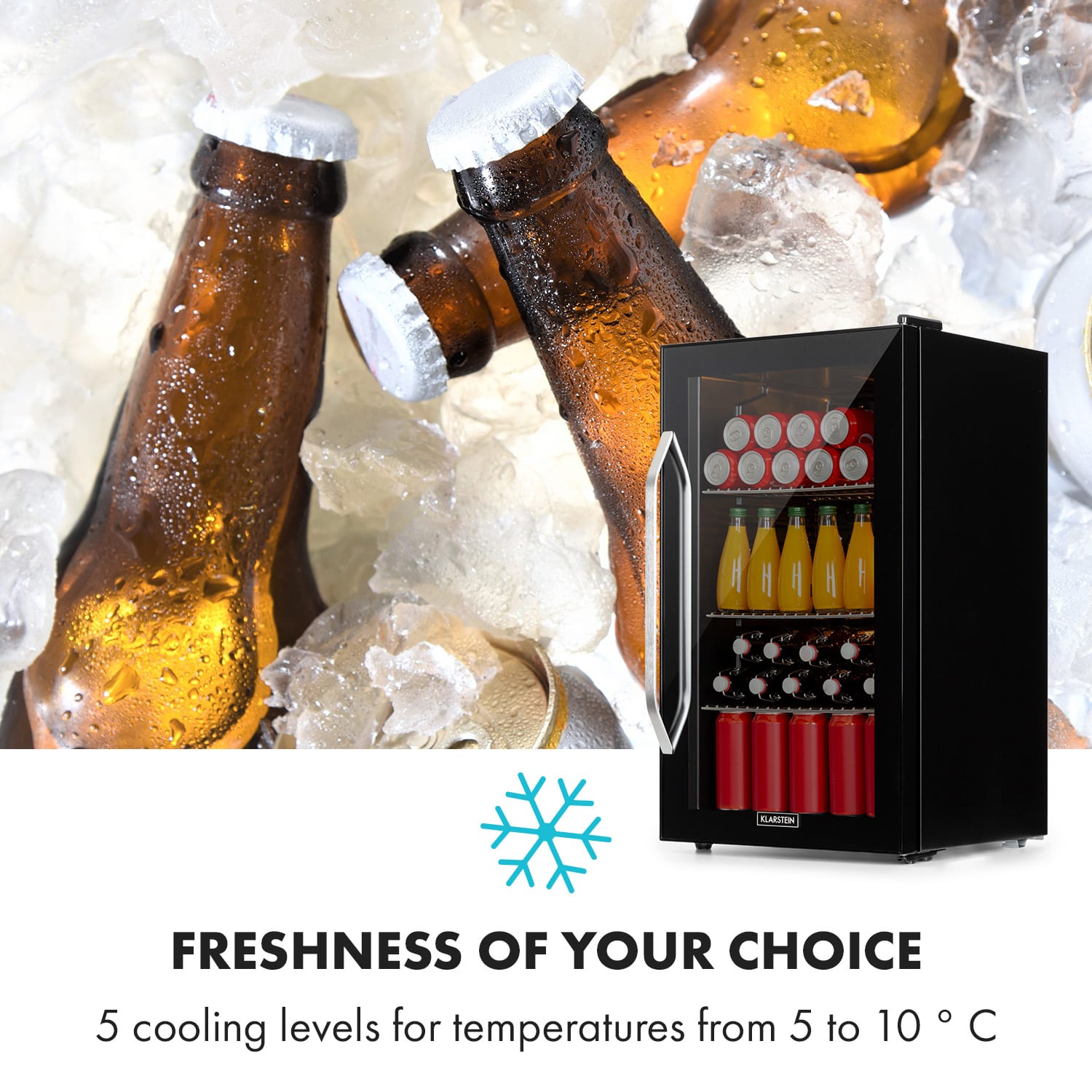 Dokonalé chladenie v luxusnej čiernej farbe. Chladnička Klarstein Beersafe XXL Onyx je ideálnym miestom na uloženie čerstvých potravín a chladných nápojov v malých domácnostiach, párty miestnostiach, kanceláriách alebo v záhradných domčekoch!So svojimi kompaktnými rozmermi je chladnička Klarstein Beersafe XXL Onyx veľmi veľká z hľadiska úložného priestoru: 80 litrov úžitkového obsahu poskytuje na troch kovových roštoch dostatok priestoru pre širokú škálu potravín od jogurtu a syra cez mäso až po zeleninu alebo tiež na chladenie osviežujúcich nápojov. Desať zásuviek na police s odstupom po 4 cm poskytujú rozličné možnosti flexibilného usporiadania vnútorného priestoru zariadenia. Na chladenie je k dispozícii podľa voľby 5 úrovní regulácie výkonu od 5 do 10 °C. Zariadenie Beersafe XXL Onyx vytvára osobitný dojem predovšetkým svojím senzačným dizajnom: sklenené dvere s čiernym rámom umožňujú neustály pohľad do interiéru rovnako čiernej konštrukcie. Samostatne zapínateľné LED svetlo v interiéri zariadenia osvetľuje skladované potraviny chladným bielym svetlom.Vďaka systému EcoExcellence je zariadenie Klarstein Beersafe XXL Onyx mimoriadne šetrné k životnému prostrediu: jeho výkonný kompresný chladiaci systém pracuje úsporne, korešponduje s triedou energetickej účinnosti E. S hladinou hluku len 41 dB je okrem toho zariadenie mimoriadne nehlučné, čo umožňuje jeho využitie v hotelových alebo hosťovských izbách.Energeticky úsporné zariadenie je prínosom pre každú malú domácnosť: chladnička Klarstein Beersafe XXL Onyx, ideálna ako chladnička na nápoje.