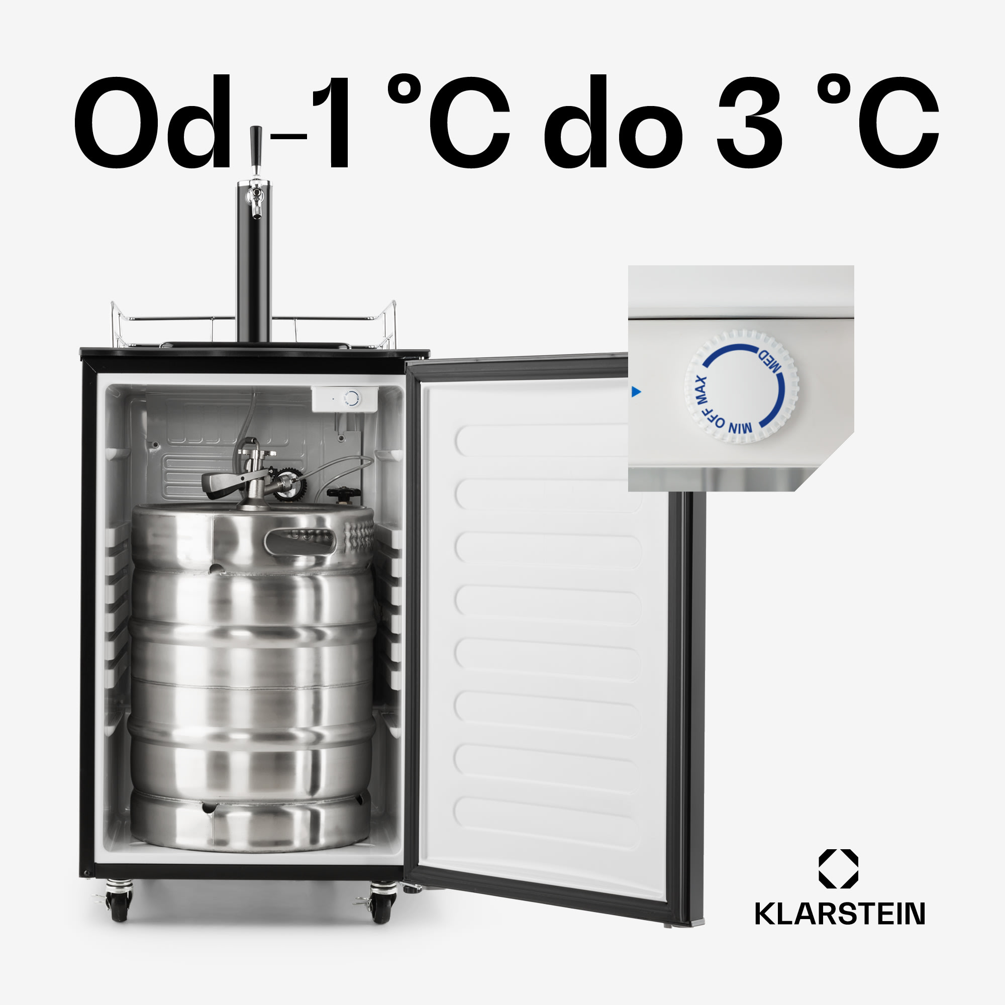 Dobre vychladené osvieži lepšie: Chladnička na nápoje v sudoch Klarstein Big Spender Single je novým stredobodom každej rodinnej oslavy a párty. Netečie tu síce mlieko a med, ale čerstvo čapované pivo alebo limonáda tečie v neustálom prúde! Kto by nesníval o vlastnom výčape pre svojich hostí? Teraz je to možné s čapovacím systémom Klarstein Big Spender Single! V priestrannom interiéri je možné jednoducho umiestniť štandardné sudy do veľkosti 50 litrov a vďaka voľne nastaviteľnej teplote získavajú dokonalú teplotu na pitie. Aby zábave pri čapovaní nestálo nič v ceste, zariadenie Po niekoľkých krokoch už tečie do pohára pivo alebo limonáda z pochromovaného kohútika. Aby bol tento pôžitok k dispozícii všade, chladnička je plne mobilná so štyrmi pevnými podlahovými kolieskami – dostane sa teda so súdkom piva všade. Zariadenie Klarstein Big Spender Single zaujme aj opticky: Matná čierna konštrukcia s pochromovaným zábradlím a podobne pochromovanými kohútikmi sa hravo začlení do akéhokoľvek prostredia. Či s hosťami, alebo bez nich, dobre vychladené a čerstvé pivo alebo limonáda chutia najlepšie!