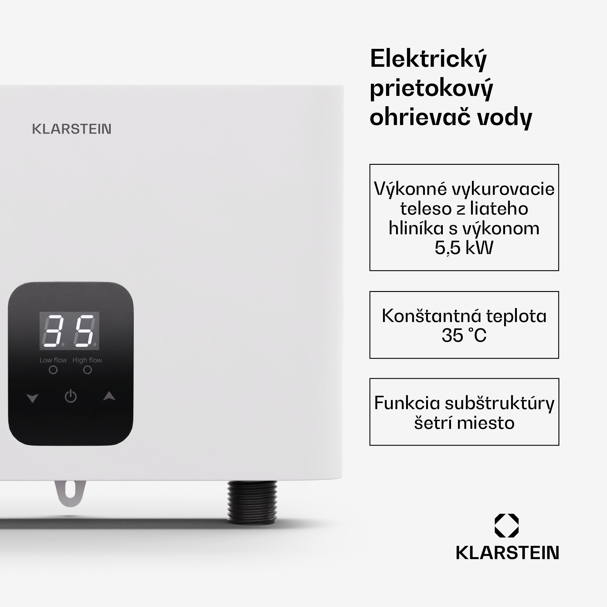 Elektrický prietokový ohrievač vody Klarstein Blaze Flow je kompaktné a efektívne riešenie na zabezpečenie konštantnej dodávky teplej vody. Tento prietokový ohrievač vody pod stôl s liatym hliníkovým vyhrievacím telesom zabezpečuje rýchly a spoľahlivý ohrev. S výkonom 5,5 kW a napätím 230 V je ideálny na použitie v domácnostiach, kde je obmedzený priestor, ale vyžaduje sa spoľahlivá dodávka teplej vody. Spotrebič ohrieva vodu na konštantnú teplotu 35 °C, takže je ideálny na každodenné použitie, napríklad na umývanie rúk a čistenie. Vďaka štíhlemu dizajnu a nízkej hmotnosti ho možno ľahko nainštalovať pod umývadlo, čím sa ušetrí cenné miesto v kuchyni alebo kúpeľni. Okrem toho elektrický prietokový ohrievač vody Klarstein Blaze Flow nevyžaduje batérie, čo zjednodušuje údržbu a prevádzku. Tento prietokový ohrievač vody je vynikajúcou voľbou pre každého, kto hľadá energeticky úsporné a priestorovo šetrné riešenie pre svoju dodávku teplej vody.