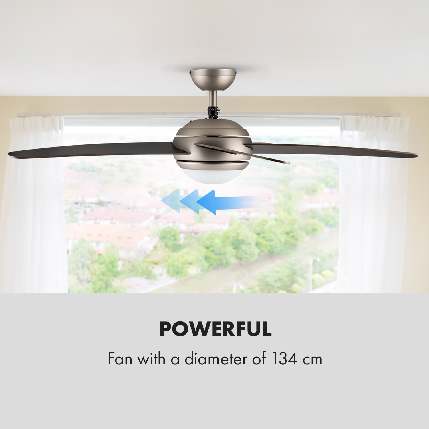 Klarstein Bolero, stropný ventilátor so svietidlom, 55 W, 134 cm, diaľkový ovládač, orechové ramená – Kúpiť