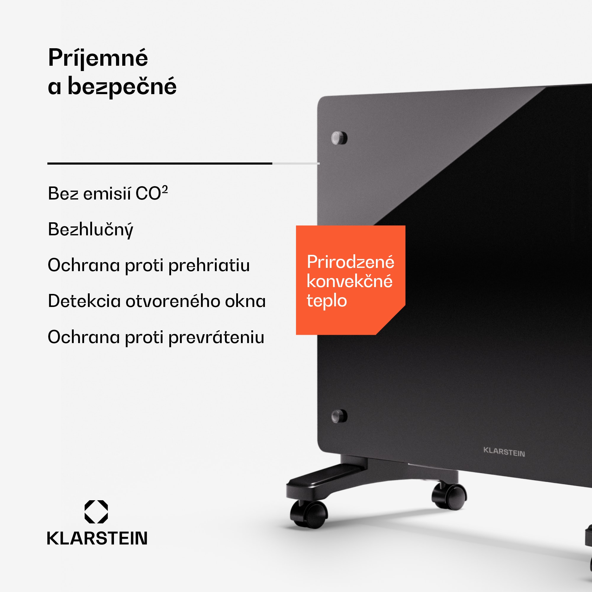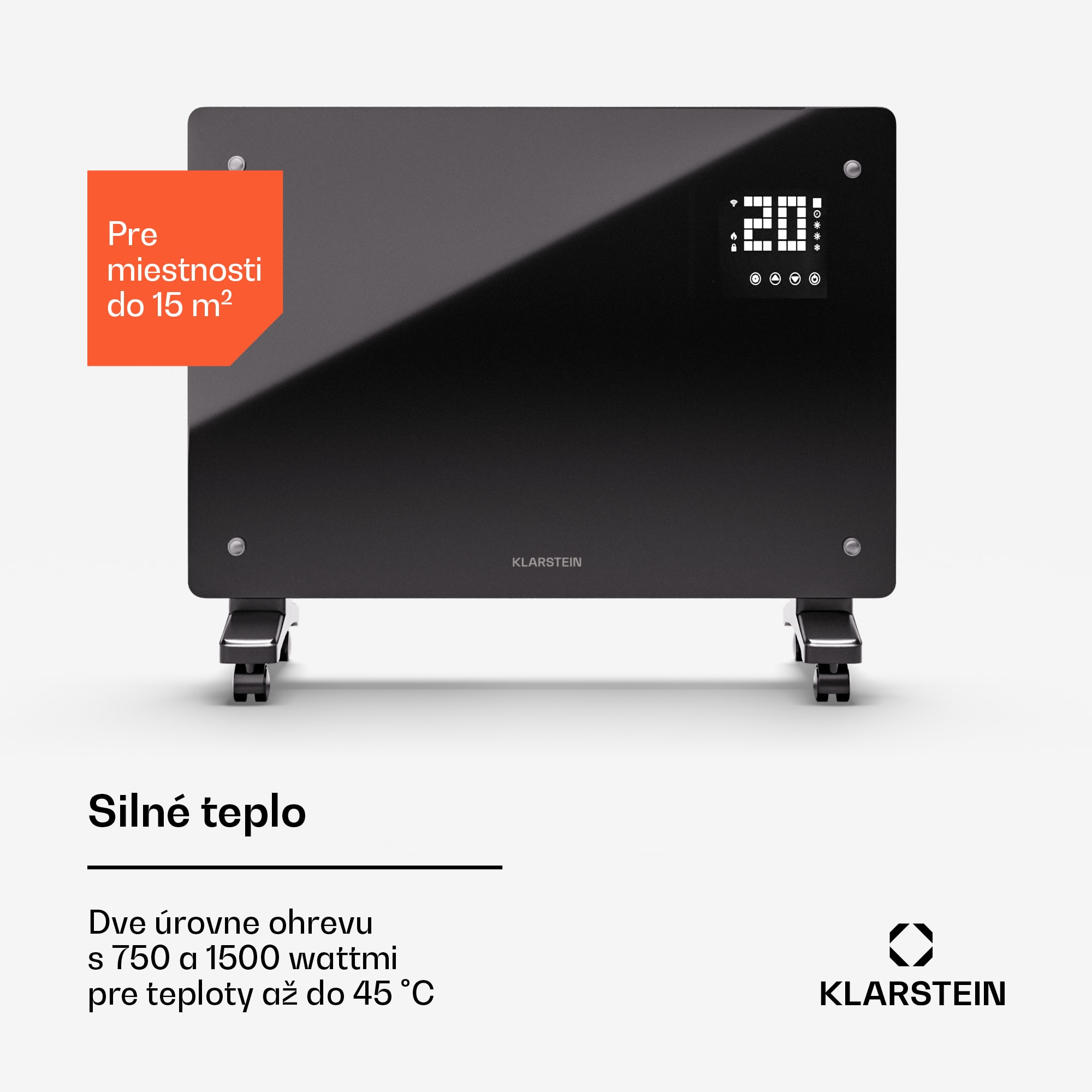 Elegancia, ktorá vo vašom domove prebudí príjemné hrejivé pocity a útulné teplo: Konvekčné vykurovacie teleso Klarstein Bornholm Smart poskytuje rovnomerné teplo s maximálnou teplotou 50 °C v miestnostiach do 15 m². Výkonný ohrievač Klarstein Bornholm Smart s dvoma stupňami ohrevu s výkonom 750 alebo 1500 W rýchlo a spoľahlivo vyhrieva miestnosti. Vďaka inteligentnému režimu ECO je spotreba energie znížená na minimum: To šetrí životné prostredie a vašu peňaženku. Vďaka SmartHeat Design môžete zariadenie jednoducho integrovať do domácej WiFi siete. Plne kompatibilný s Alexou alebo cez aplikáciu Klarstein na vašom smartfóne ho možno ovládať takmer odkiaľkoľvek: zapnite ho na ceste domov a čaká vás teplý byt – bez toho, aby ste museli celý deň kúriť. Vďaka stupňu krytia IP24 je moderný ohrievač ideálny aj do kuchyne alebo kúpeľne a v prípade potreby ho možno nainštalovať aj na stenu.Ohrievač Klarstein Bornholm Smart poskytuje spoľahlivé teplo, vďaka podlahovým kolieskam ho môžete ľahko premiestniť do akejkoľvek miestnosti a jeho používanie je mimoriadne pohodlné! Tento konvektor je skutočne všestranný a praktický.Poznámka: Tento výrobok je vhodný len na použitie v dobre izolovaných miestnostiach alebo na príležitostné použitie.