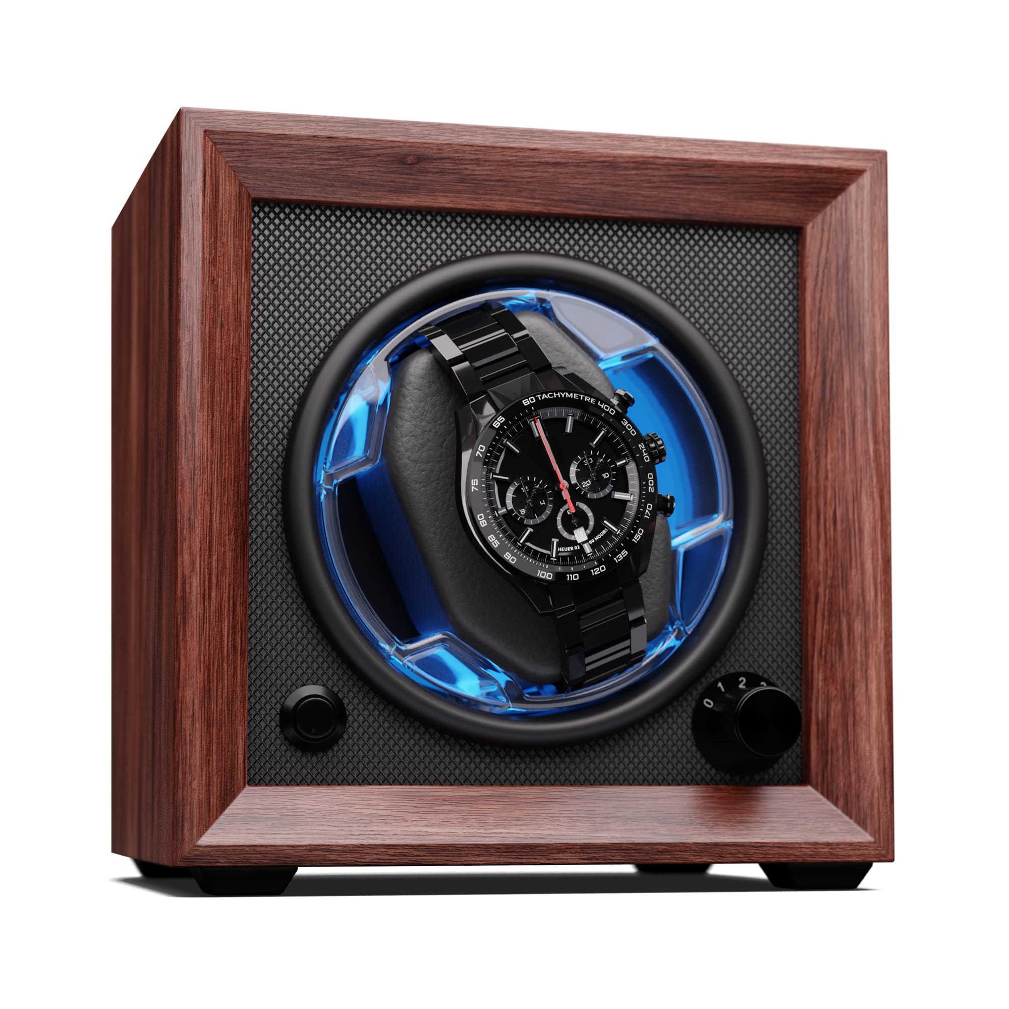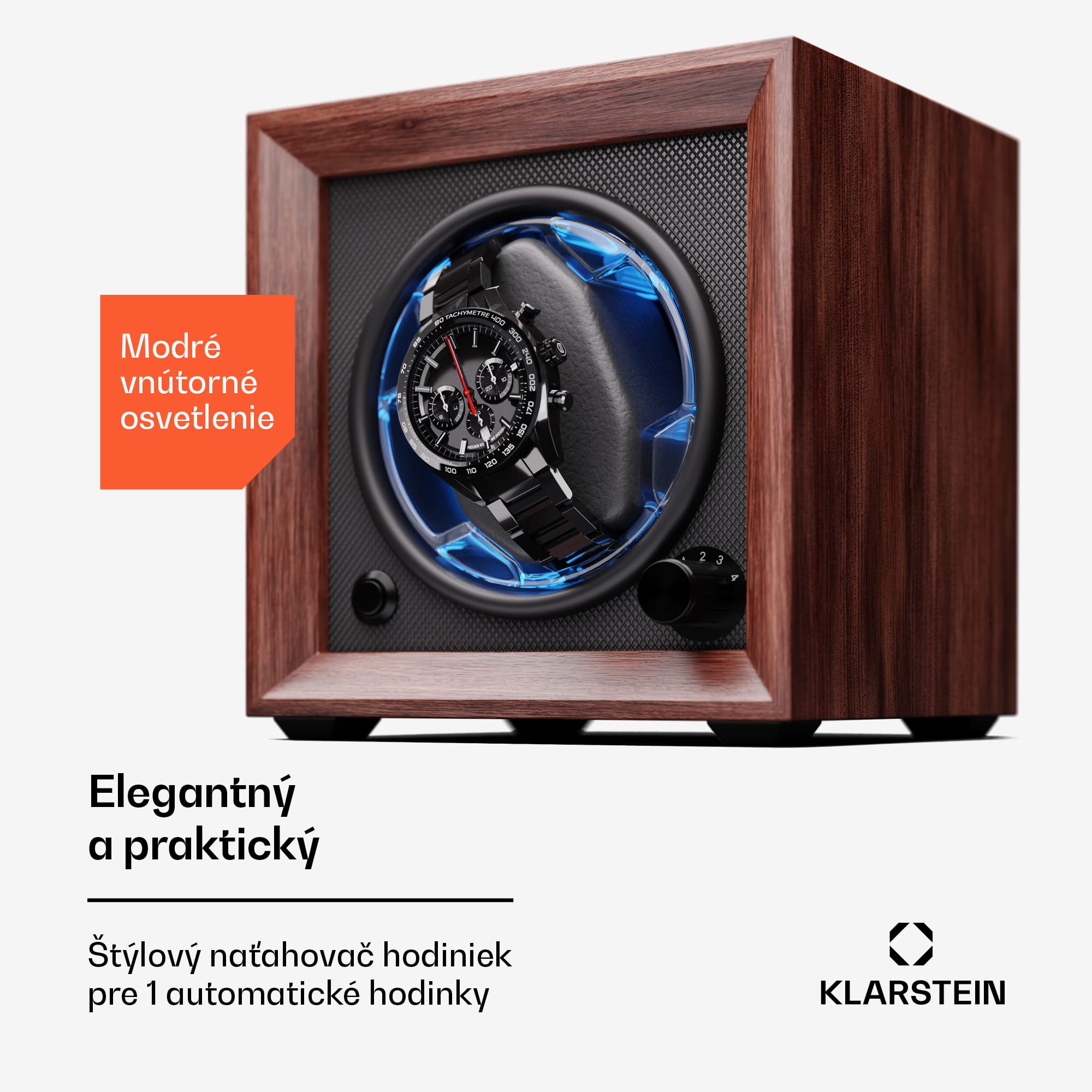 Dokonale tvarované precízne remeselné spracovanie! S naťahovačom hodiniek a stojanom na hodinky Klarstein Brienz 1 budú vaši elegantní spoločníci vždy dobre udržiavaní a pripravení na použitie. Automatické hodinky uložené v zariadení sa nepretržite naťahujú pomocou 4 režimov otáčania, ktoré simulujú pohyb zápästia. K starostlivosti o strojček hodiniek prispieva aj rotácia, ktorá účinne pôsobí proti stuhnutiu olejového mazania. Naťahovač hodiniek Brienz 1 má elegantné puzdro dreveného vzhľadu, ktoré štýlovo zapadne do ambientu každej miestnosti. Štýlové integrované modré osvetlenie LED možno nastaviť pomocou jednoduchého a intuitívneho ovládania. Praktický otočný gombík na nastavenie požadovaného režimu sa nachádza vpravo. Vďaka integrovanému vankúšiku z pamäťovej peny možno do naťahovača ľahko umiestniť hodinky s rôznymi veľkosťami remienkov, ako aj dámske i pánske hodinky. Napájanie sa uskutočňuje prostredníctvom USB kábla, ktorý možno použiť s akýmkoľvek napájacím zdrojom USB, a preto je úplne nezávislý od prevládajúceho typu zásuvky.Vďaka svojim skromným rozmerom a hladkému chodu tichého motorčeka s prevádzkovou hlučnosťou nižšou ako 10 dB možno naťahovač hodiniek jednoducho umiestniť priamo na nočný stolík alebo do iných nehlučných zón.Upozorňujeme, že zobrazené hodinky nie sú súčasťou dodávky.