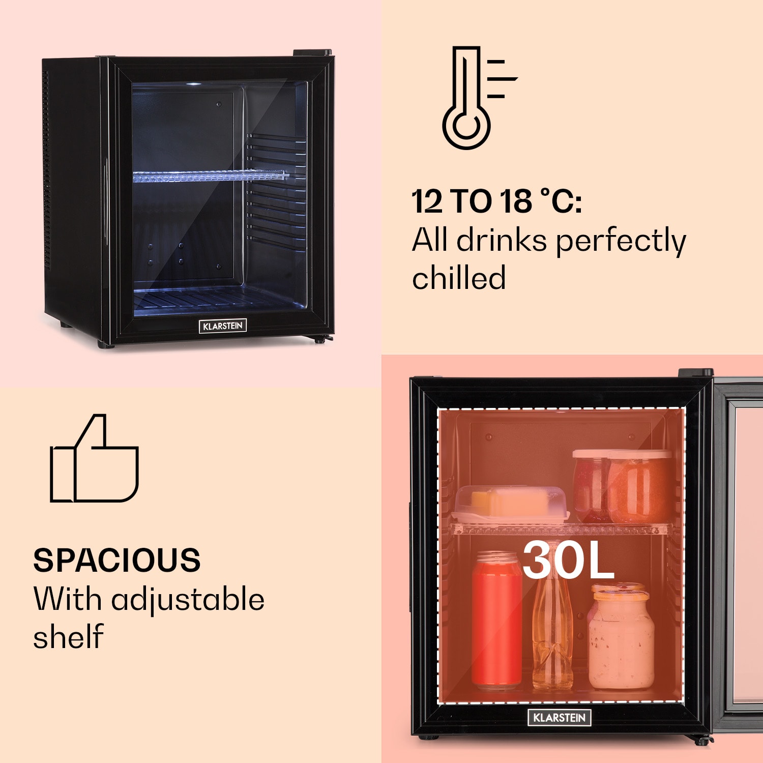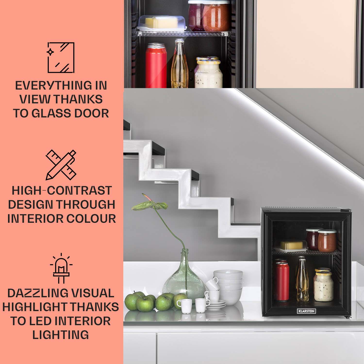 Klarstein Brooklyn 32, mini chladnička, so sklenenými dverami, LED osvetlenie, police – Kúpiť