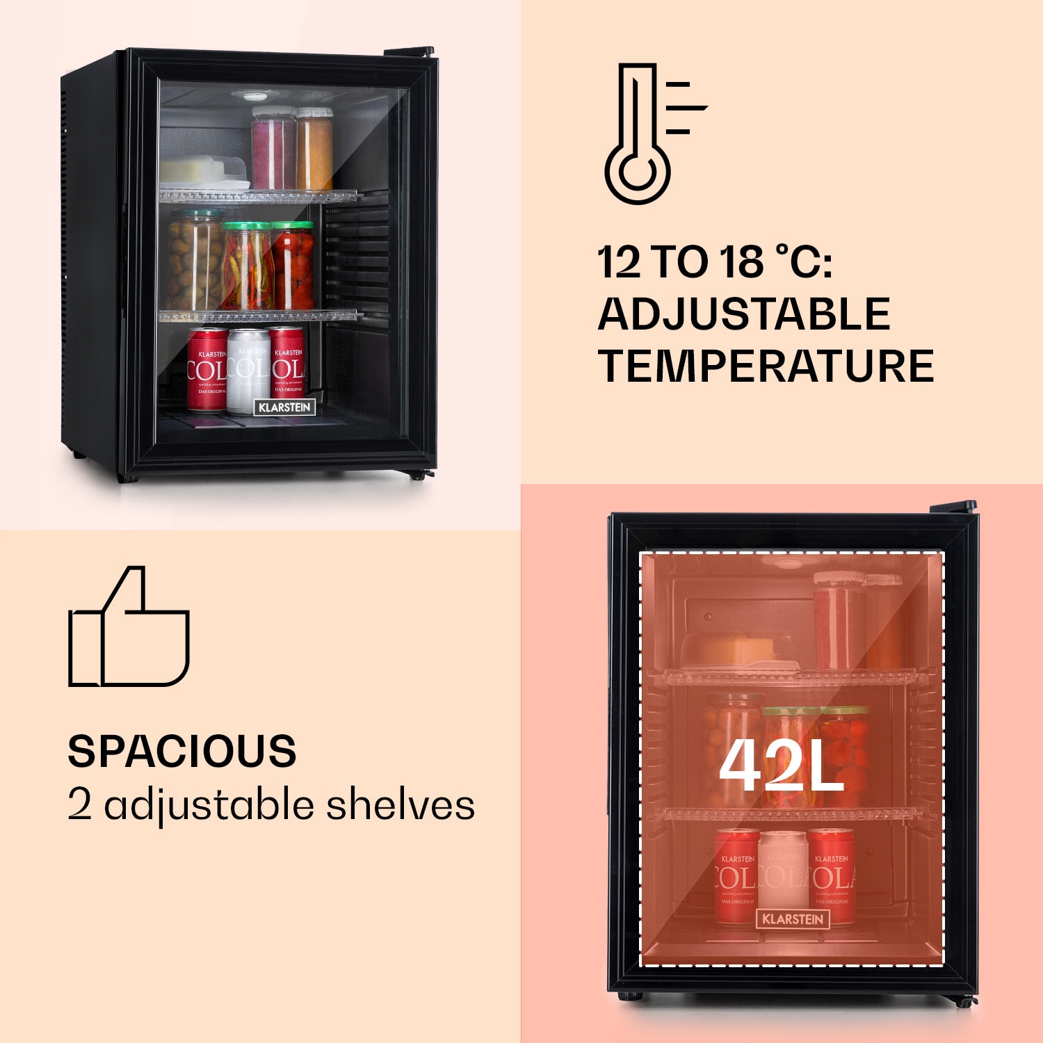 Klarstein Brooklyn 42, mini chladnička, sklenené dvere, LED osvetlenie, police – Kúpiť