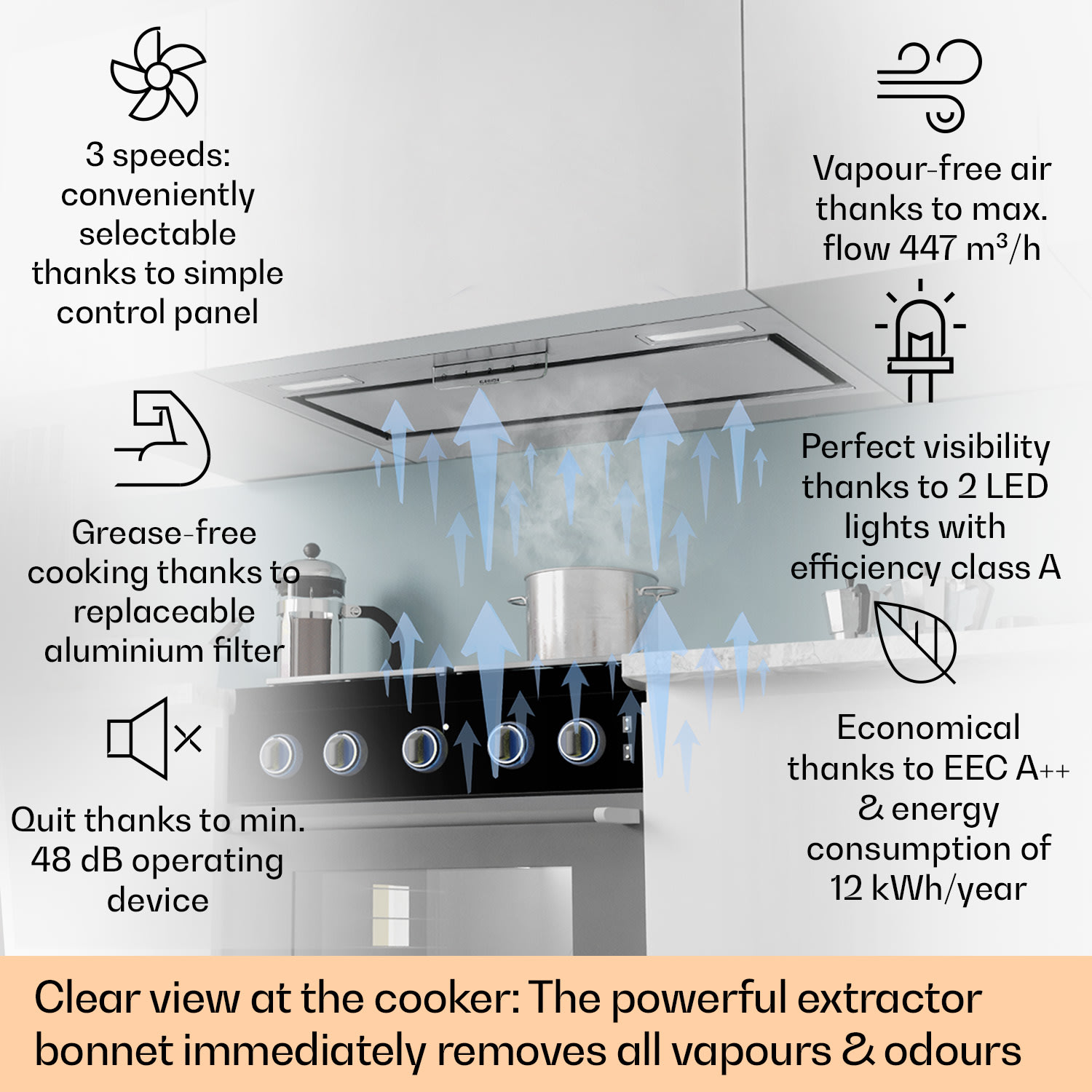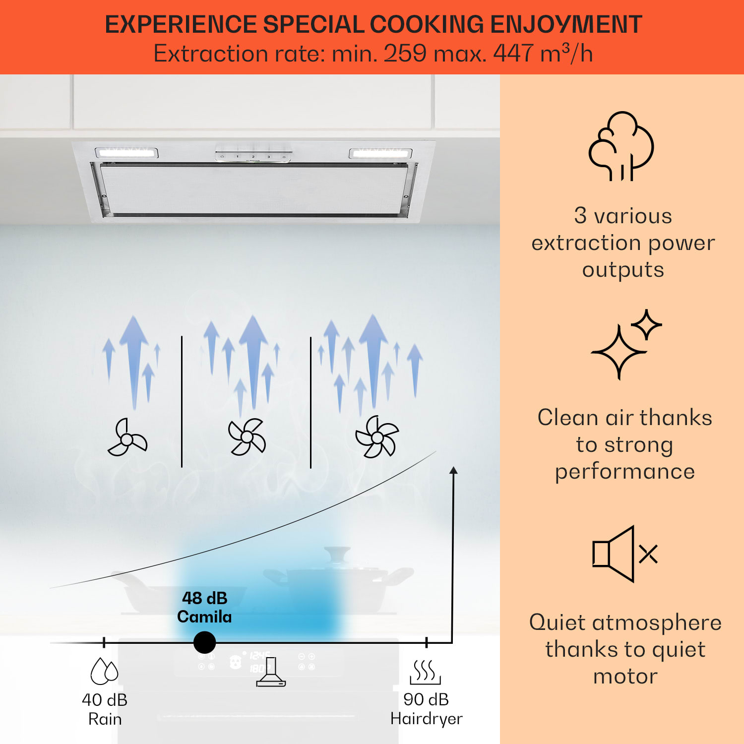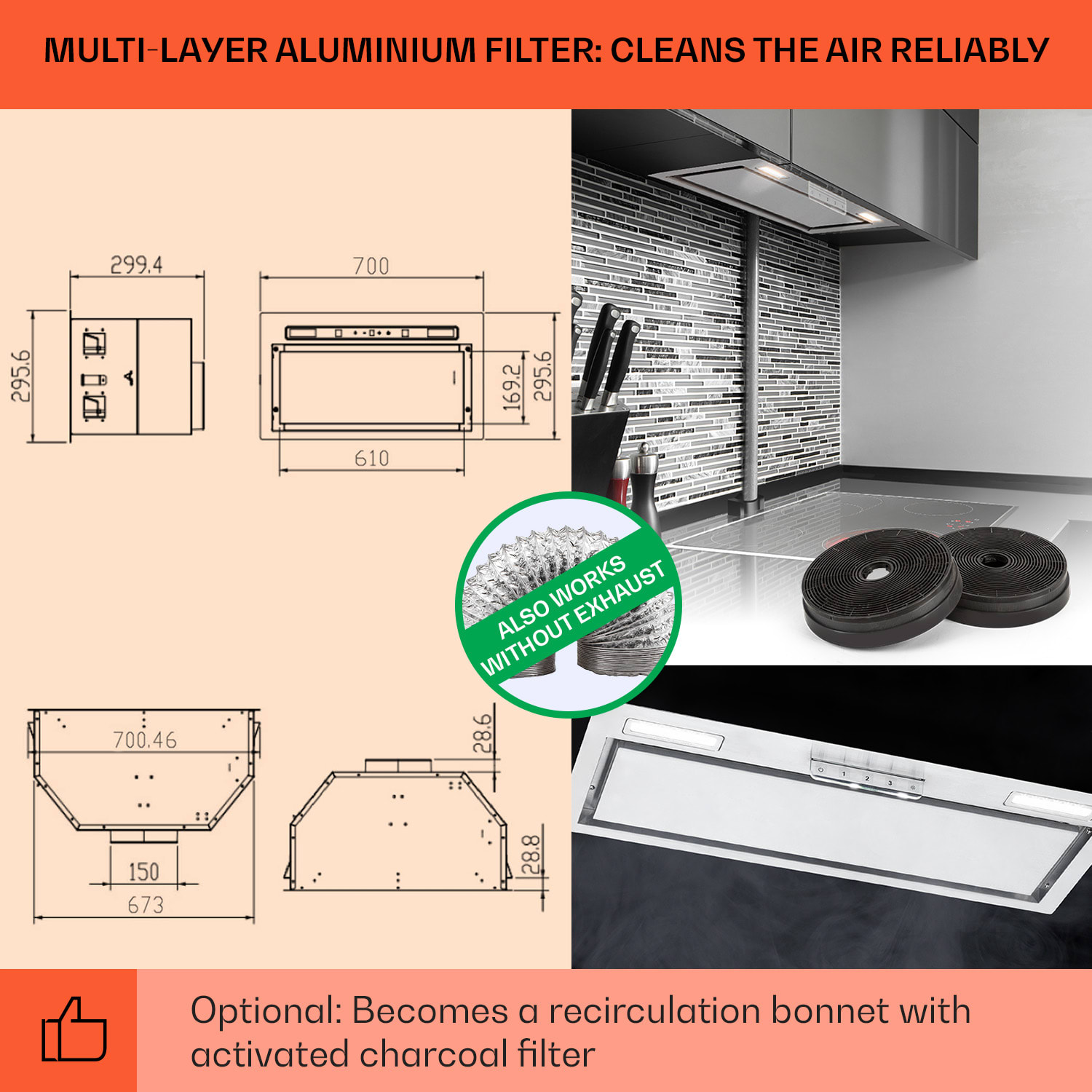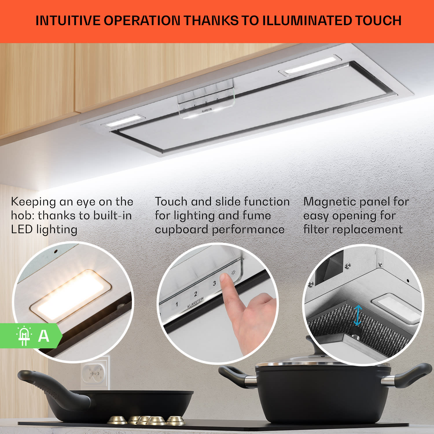 Klarstein Camila, vstavaný digestor, 70 cm, 397 m³/h, LED, dotyková plocha, nehrdzavejúca oceľ – Kúpiť
