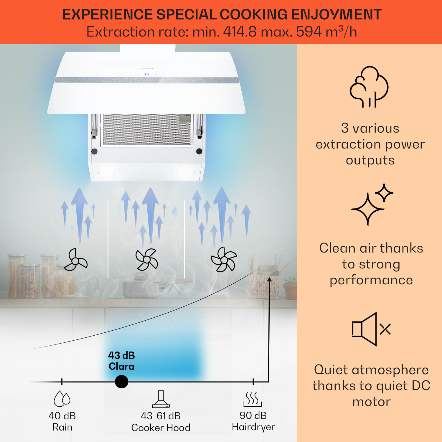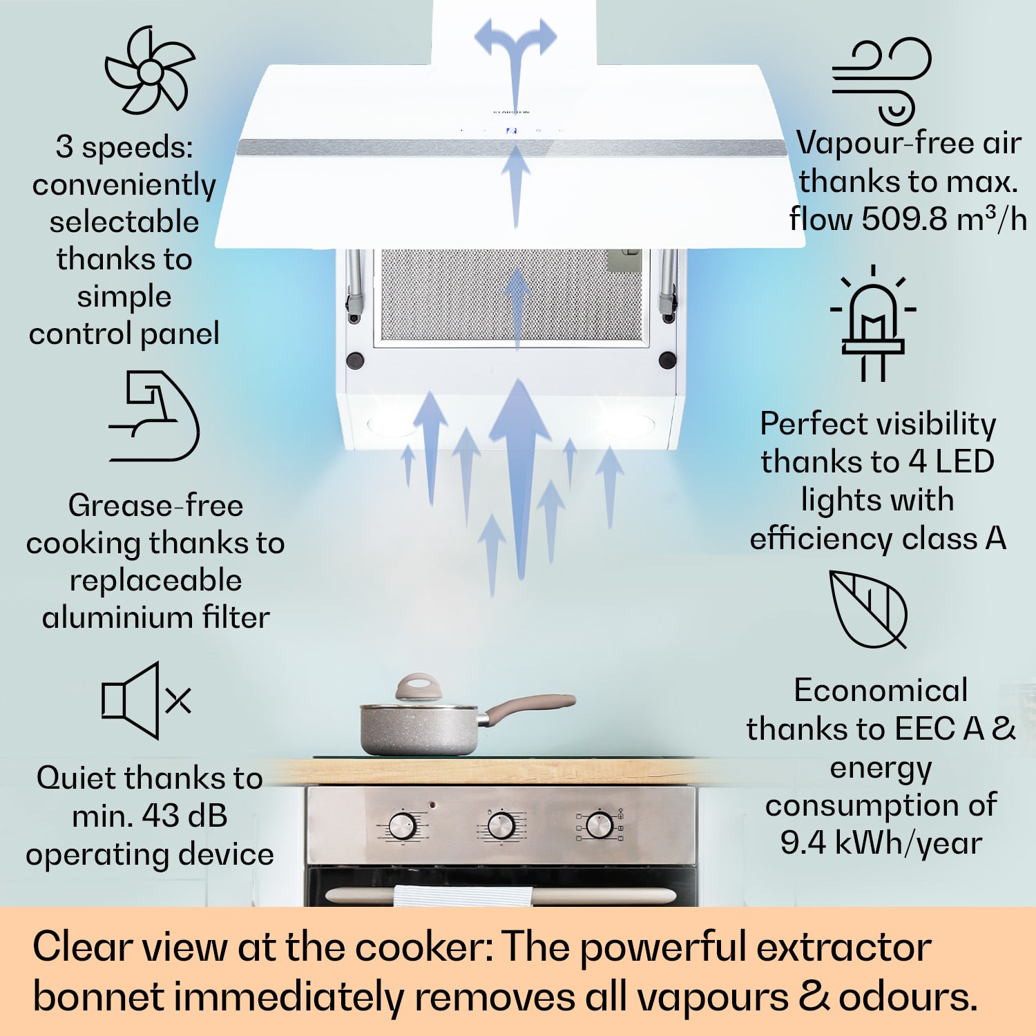 Klarstein Clara 60, digestor, 509 m³/h, dotykový displej, ambientné podsvietenie – Kúpiť