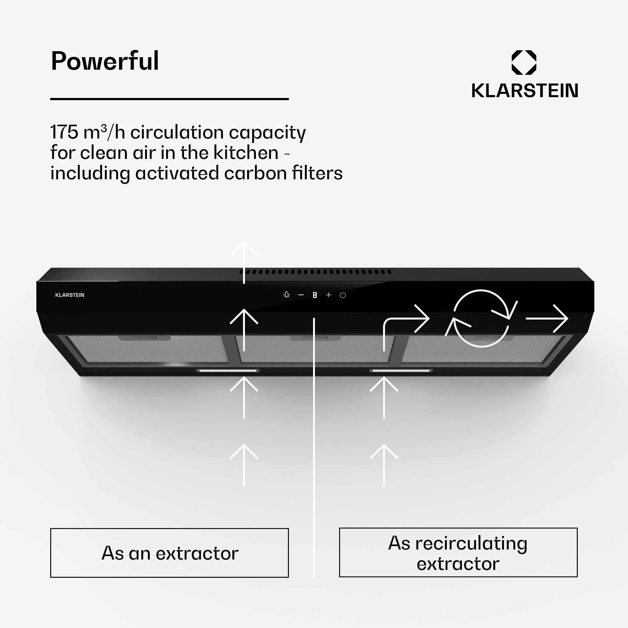 Klarstein Contempo Neo, digestor, podskrinkový, recirkulácia, 175 m³/h, SenseControl, integrované dotykové ovládanie, nehrdzavejúca oceľ / akrylátové sklo – Kúpiť