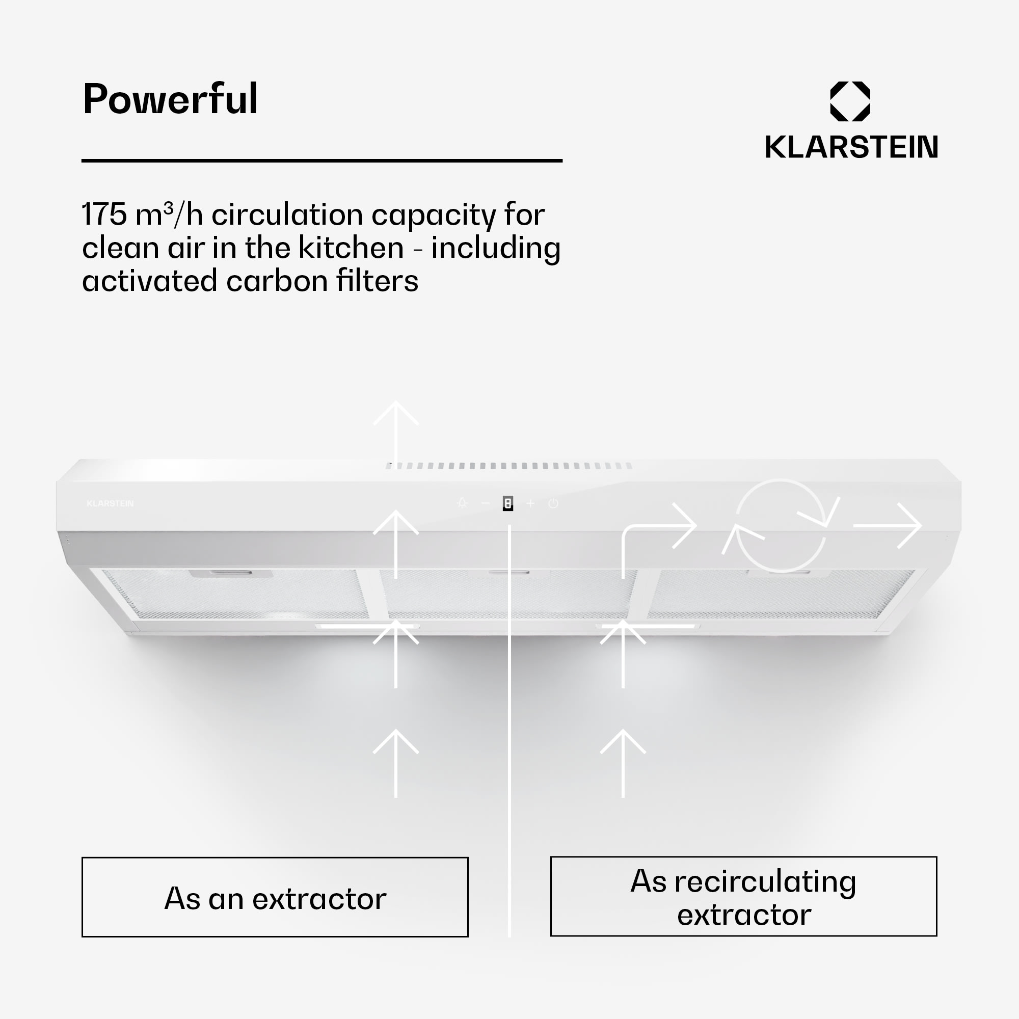 Klarstein Contempo Neo, digestor, podskrinkový, recirkulácia, 175 m³/h, SenseControl, integrované dotykové ovládanie, nehrdzavejúca oceľ / akrylové sklo