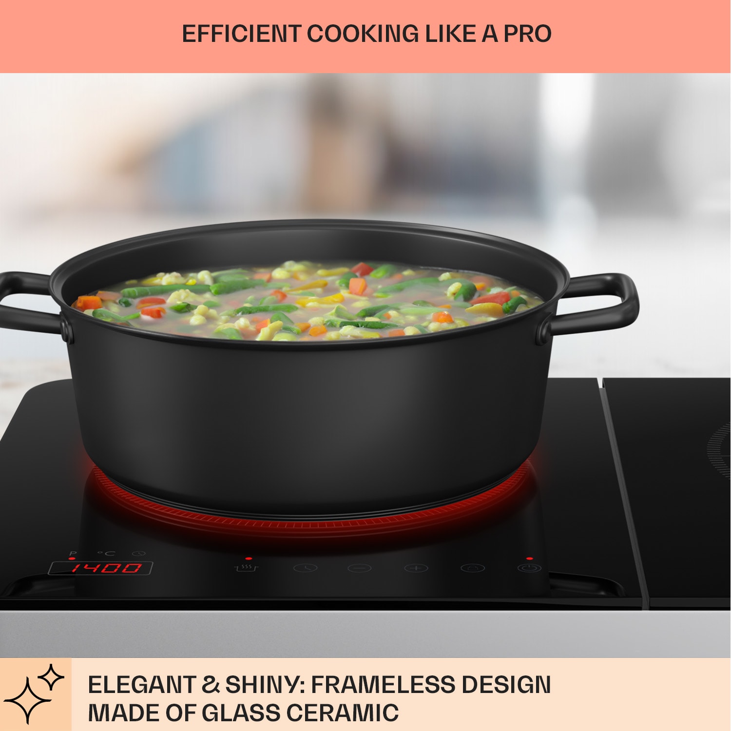 Studené kuchyne sú minulosťou, pretože s indukčnou dvojplatničkou Klarstein Cookio vznikne priestor pre horúce chute aj v tých najmenších kuchyniach. Indukčná varná doska Klarstein Cookio ponúka dve indukčné varné plochy pre hrnce a panvice, ktoré ohrievajú obsah hrncov a panvíc celkovým výkonom 3500 W. Ľavá varná zóna môže pracovať s výkonom až 2000 W a pravá varná zóna s výkonom až 1500 W, ktorý možno regulovať samostatne s 8 alebo 10 nastaveniami. Sklokeramická varná doska sa ovláda prostredníctvom integrovaného dotykového panela s LED displejom. Okrem nastavenia teploty od 60 do 240 °C je možné naprogramovať aj časovač na dobu varenia od 1 do 240 minút. Ďalšie automatické funkcie uľahčujú obsluhu a zvyšujú bezpečnosť varnej dosky: detská poistka zabraňuje neúmyselnému ovládaniu alebo zmene nastavení. Automatické rozpoznávanie panvíc zabezpečuje, že sa aktivujú len tie časti indukčnej slučky, ktoré sú potrebné, čo účinne šetrí energiu pri varení.Indukčná varná doska Klarstein Cookio prináša čierny pôvab a horúce potešenie z varenia do kuchýň jednotlivcov, študentov a malých rodín alebo víkendových a záhradných domov.
