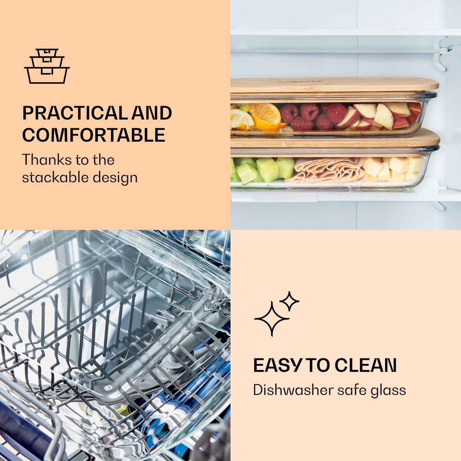 Klarstein Desiatový box s bambusovým uzáverom, 1,6 l, 2-dielna sada, odolný voči teplu, sklo, bambus