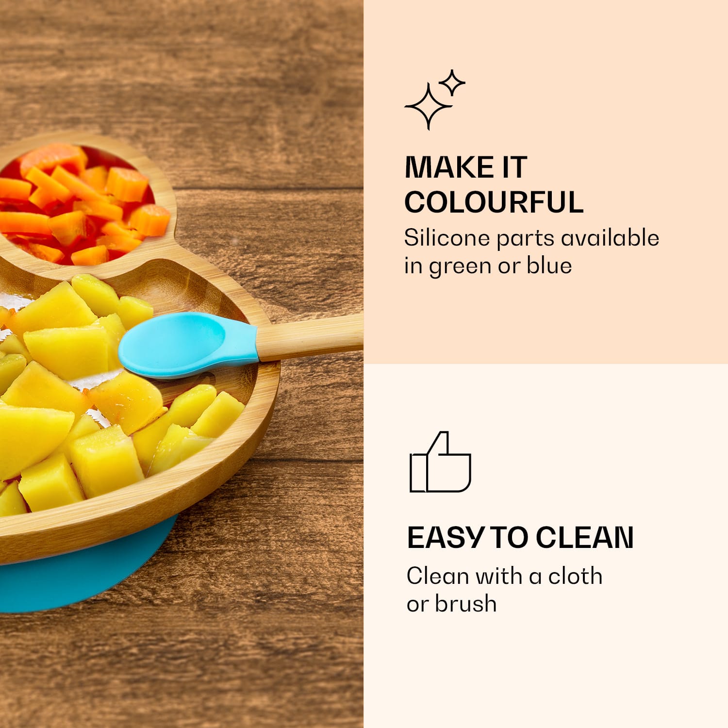 Klarstein Detská jedálenská súprava, bambusový tanier a lyžička, 250 ml, vrátane prísavky, 18 × 18 cm
