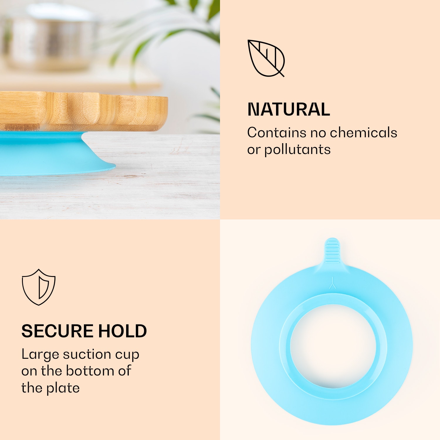 Klarstein Detská jedálenská súprava, bambusový tanier a lyžička, 250 ml, vrátane prísavky, 18 × 18 cm