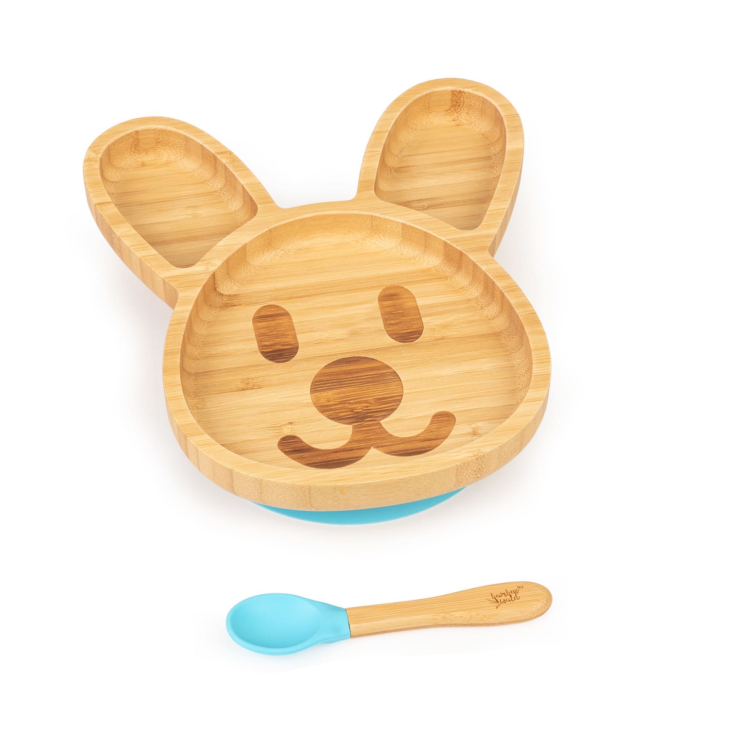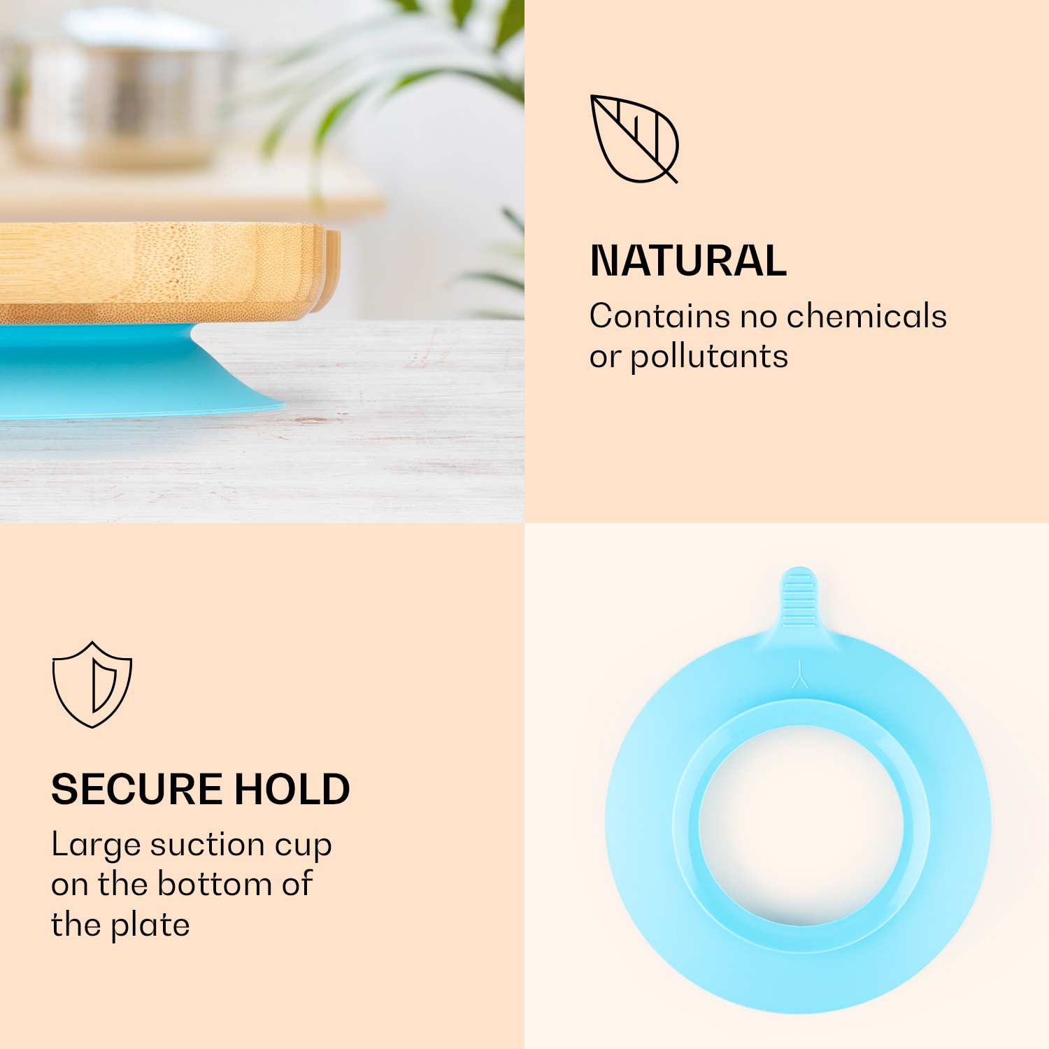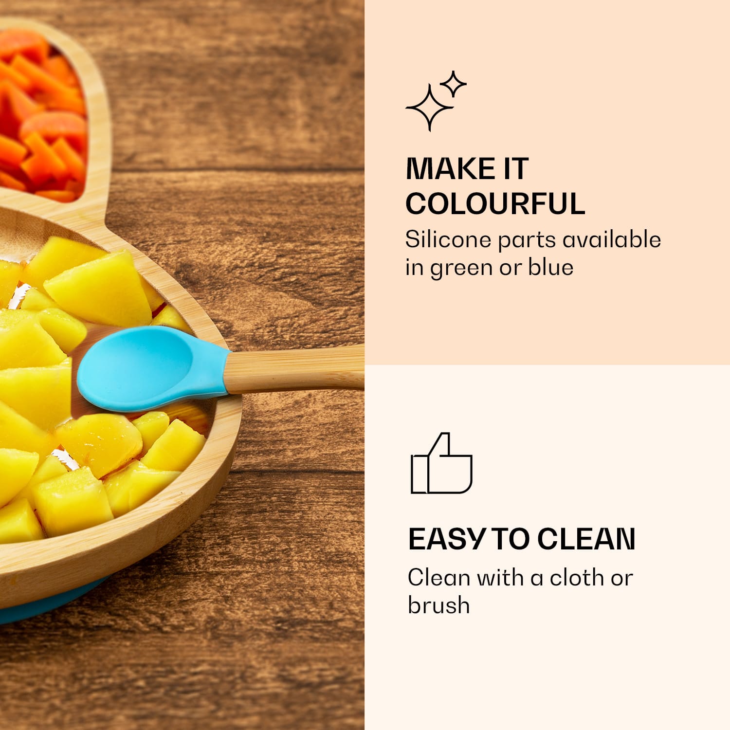 Klarstein Detská jedálenská súprava, bambusový tanier a lyžička, 250 ml, vrátane prísavky, 18 × 18 cm