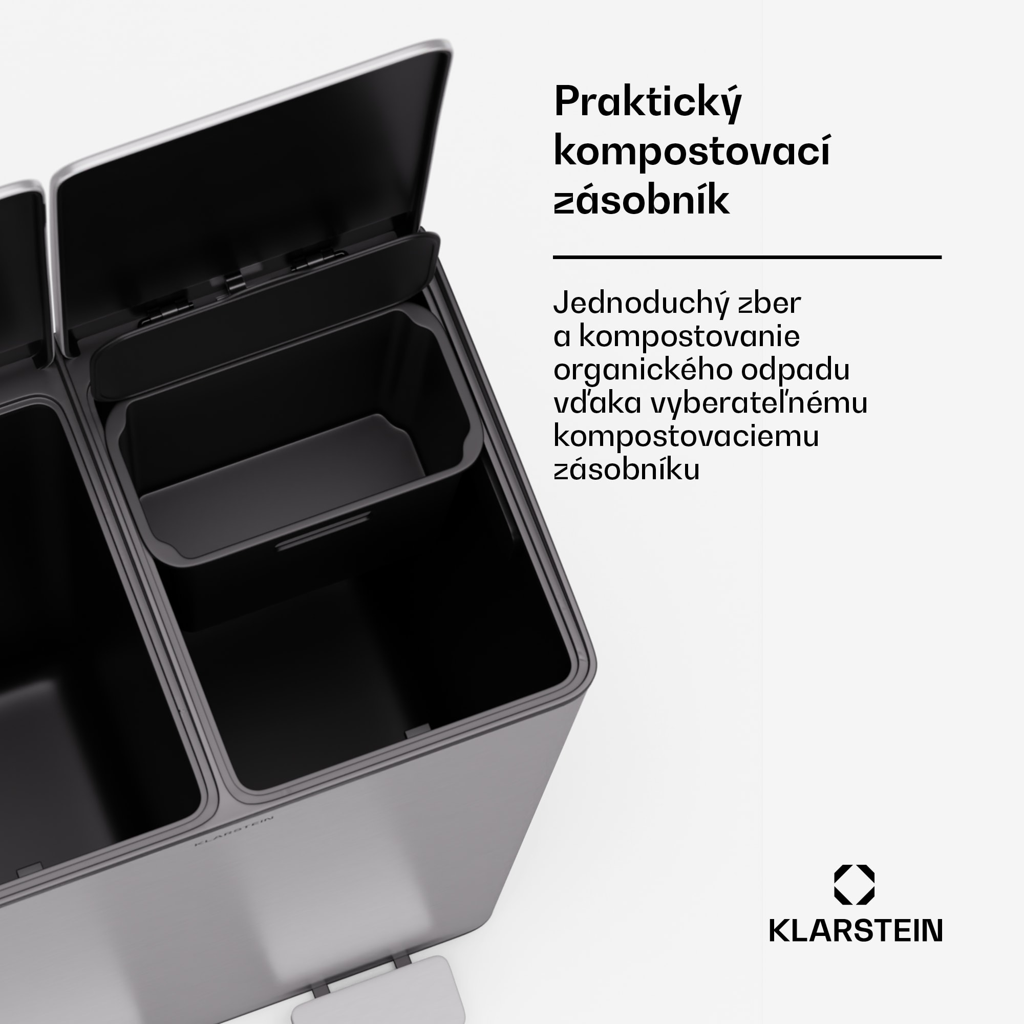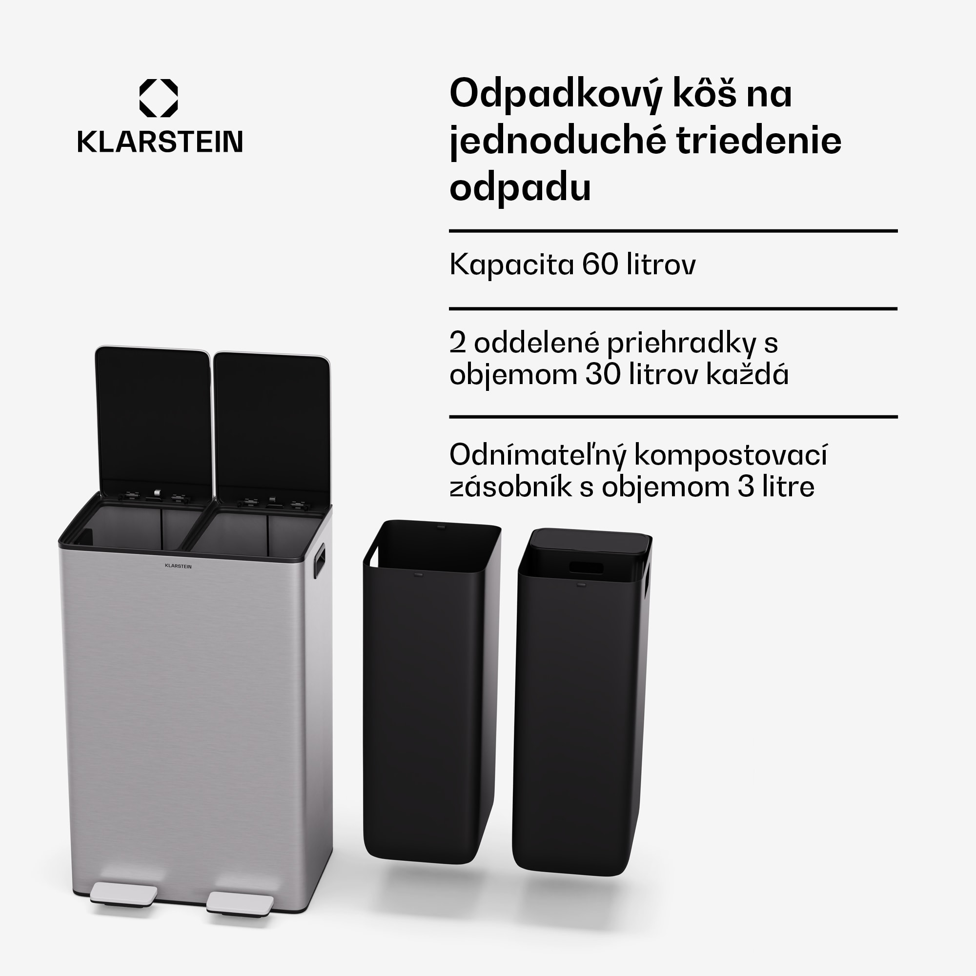 Klarstein EcoVista, odpadkový kôš s kompostérom, 60 l + 3 l/kôš + kompostér, Soft-Close