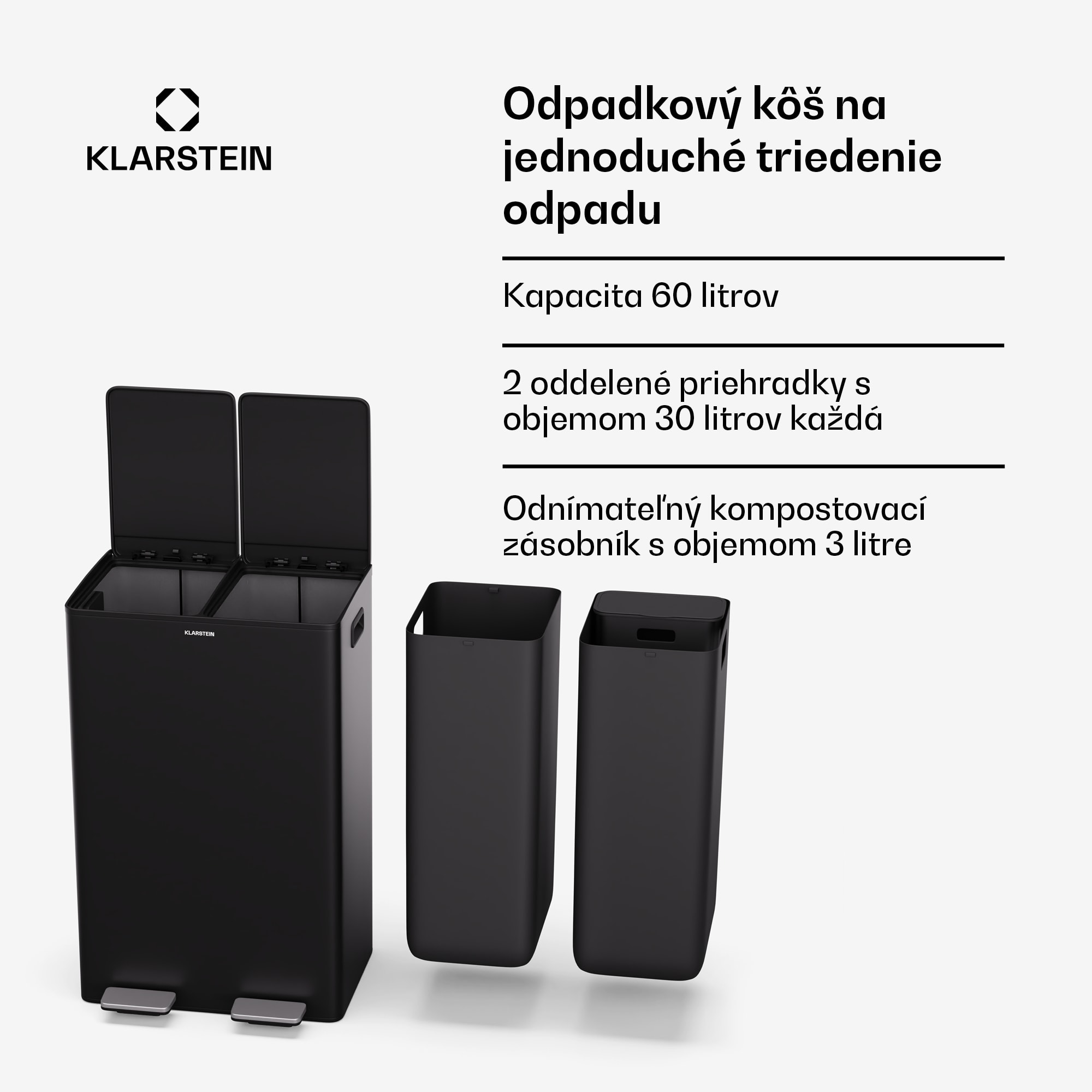 Klarstein EcoVista, odpadkový kôš s kompostérom, 60 l + 3 l/kôš + kompostér, Soft-Close
