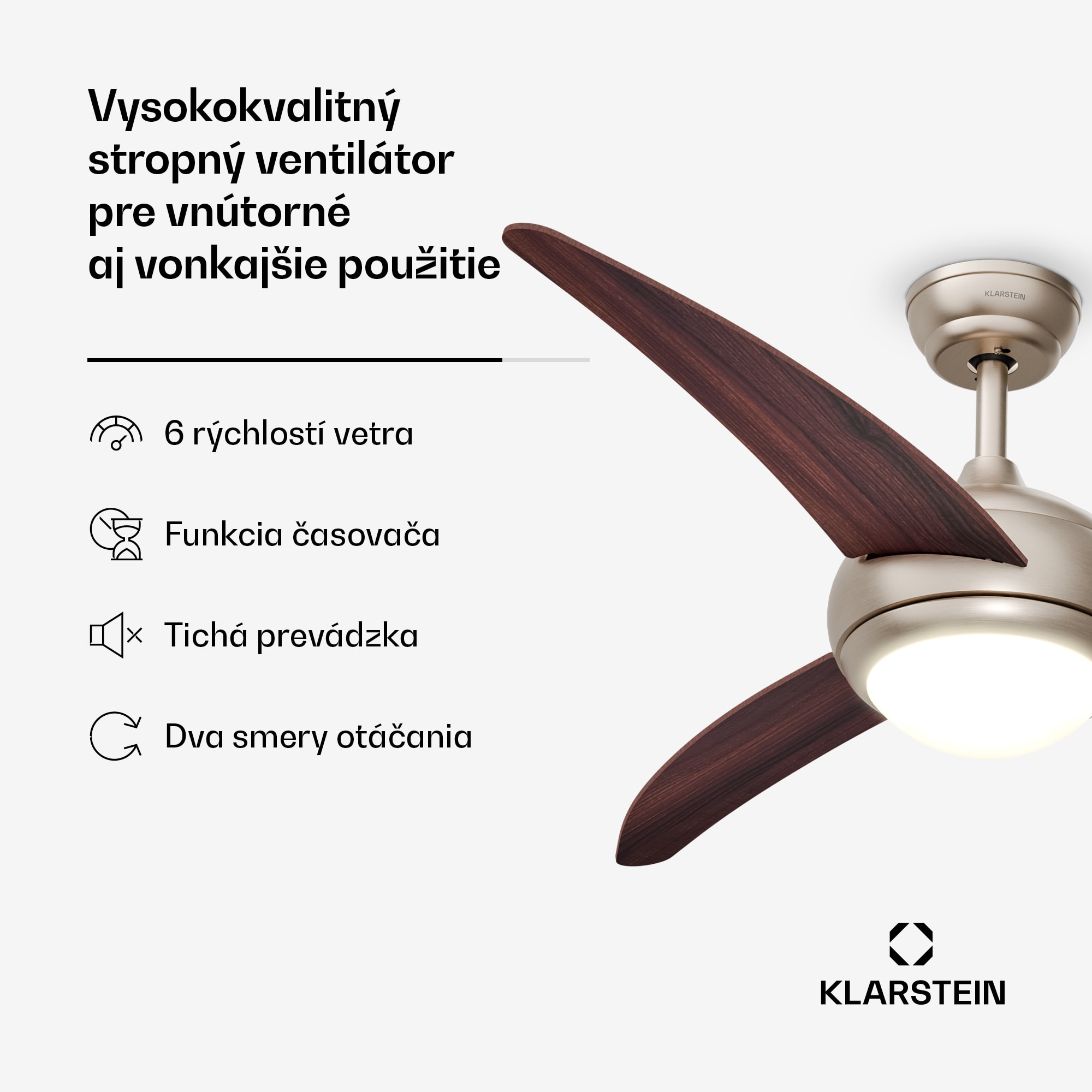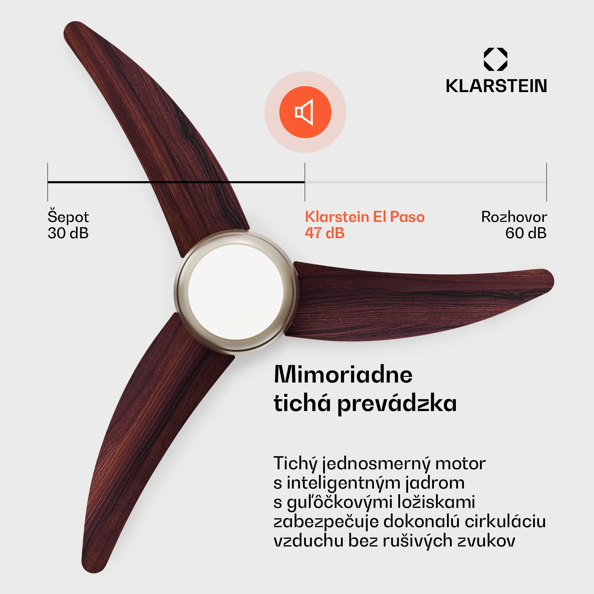 Klarstein El Paso stropný ventilátor so svetlom | 132 cm | 35 W | Tichá prevádzka | Drevo – Kúpiť