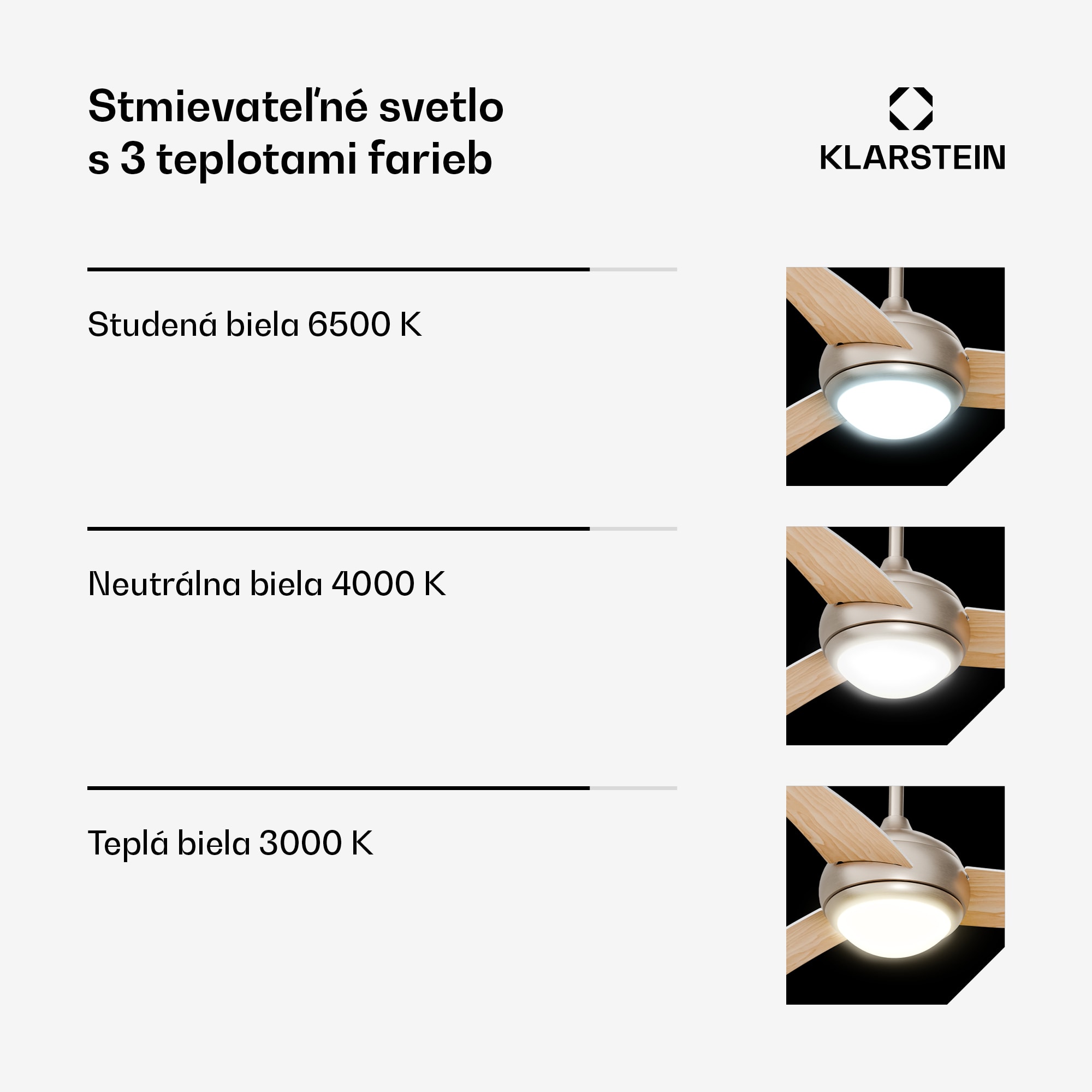 Stropný ventilátor so svetlom Klarstein El Paso sa vyznačuje vysokou kvalitou materiálov a príťažlivým, diskrétnym dizajnom.S tromi lopatkami rotora a maximálnym prietokom vzduchu 10 260 m³ za hodinu zabezpečuje príjemnú vnútornú klímu v miestnostiach s rozlohou do 25 m².Obsluhuje sa diaľkovým ovládaním a možno si vybrať šesť rôznych úrovní výkonu a dva rôzne smery otáčania. V lete ventilátor fúka vzduch smerom nadol a vytvára chladný vánok, zatiaľ čo v zime v opačnom režime nasáva vzduch smerom nahor a jemne rozvádza teplý vzduch po miestnosti.Integrovanú lampu s výkonom 60 W a svietivosťou 800 lúmenov možno ľahko použiť ako stropné svietidlo. Užívatelia si môžu vybrať z troch farieb a intenzity svetla, čo im umožňuje prispôsobiť osvetlenie svojej nálade a požiadavkám.Môže sa používať v interiéri aj exteriéri, napríklad na terasách a balkónoch. To znamená, že stropný ventilátor možno kedykoľvek použiť individuálne a podľa potreby.