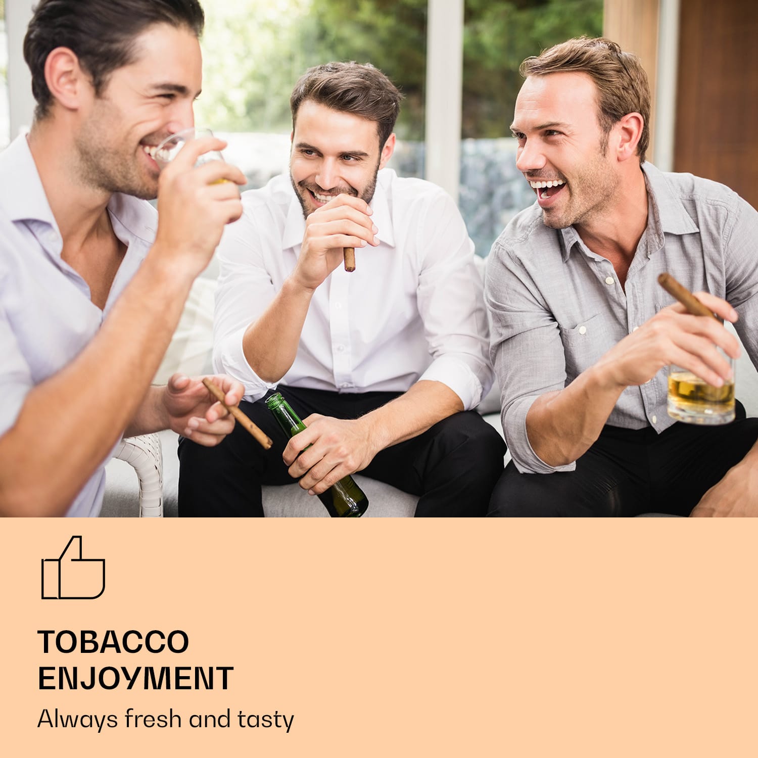 Špičkový produkt pre každého milovníka cigár: humidor Klarstein El Presidente 23 sa postará o ideálne skladovacie podmienky s konštantnou vlhkosťou a teplotou, aby luxusné cigary nestratili nič zo svojej chuti.Vo svojom veľkom 23 litrovom vnútornom priestore na 2 skladovacích plochách a s jednou zásuvkou z cédrového dreva si vaše cigary nájdu svoje miesto. Aj svojim zovňajškom presviedča El Presidente 23 s elegantným dizajnom, dvojitými presklenými dvierkami ako aj kompaktnými rozmermi. Vďaka vysokému prezentačnému faktoru sa zvlhčovač hodí na vystavenie do barov alebo klubov.