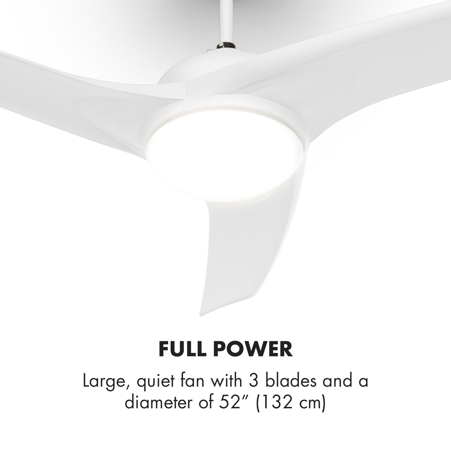 Klarstein Figo, stropný ventilátor, 52″, 55 W, stropná lampa, 2 x 42 W, diaľkový ovládač, biely