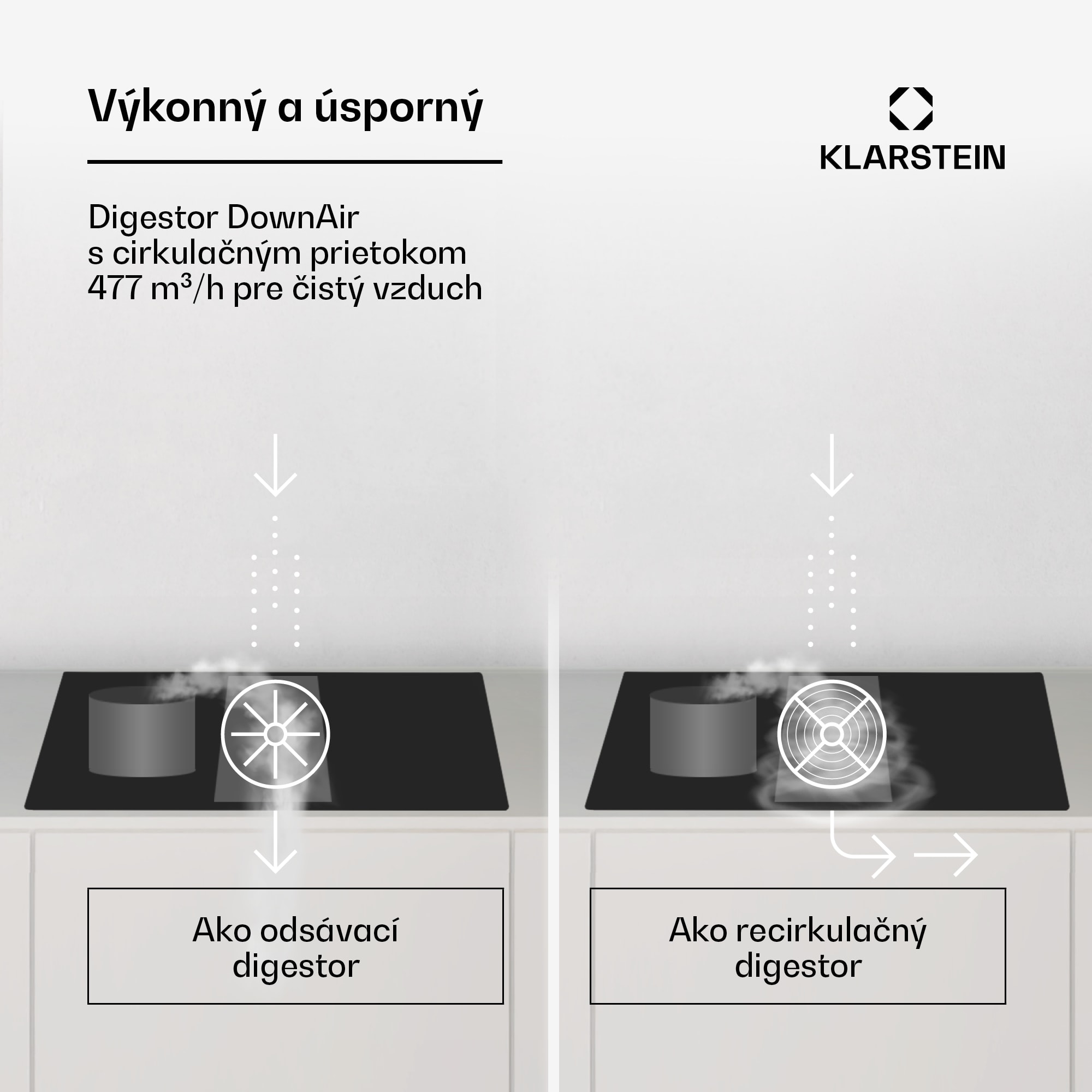 Klarstein Full House 77 Down Air System, indukčná varná doskA digestor, 477 m³/h, EEC A – Kúpiť