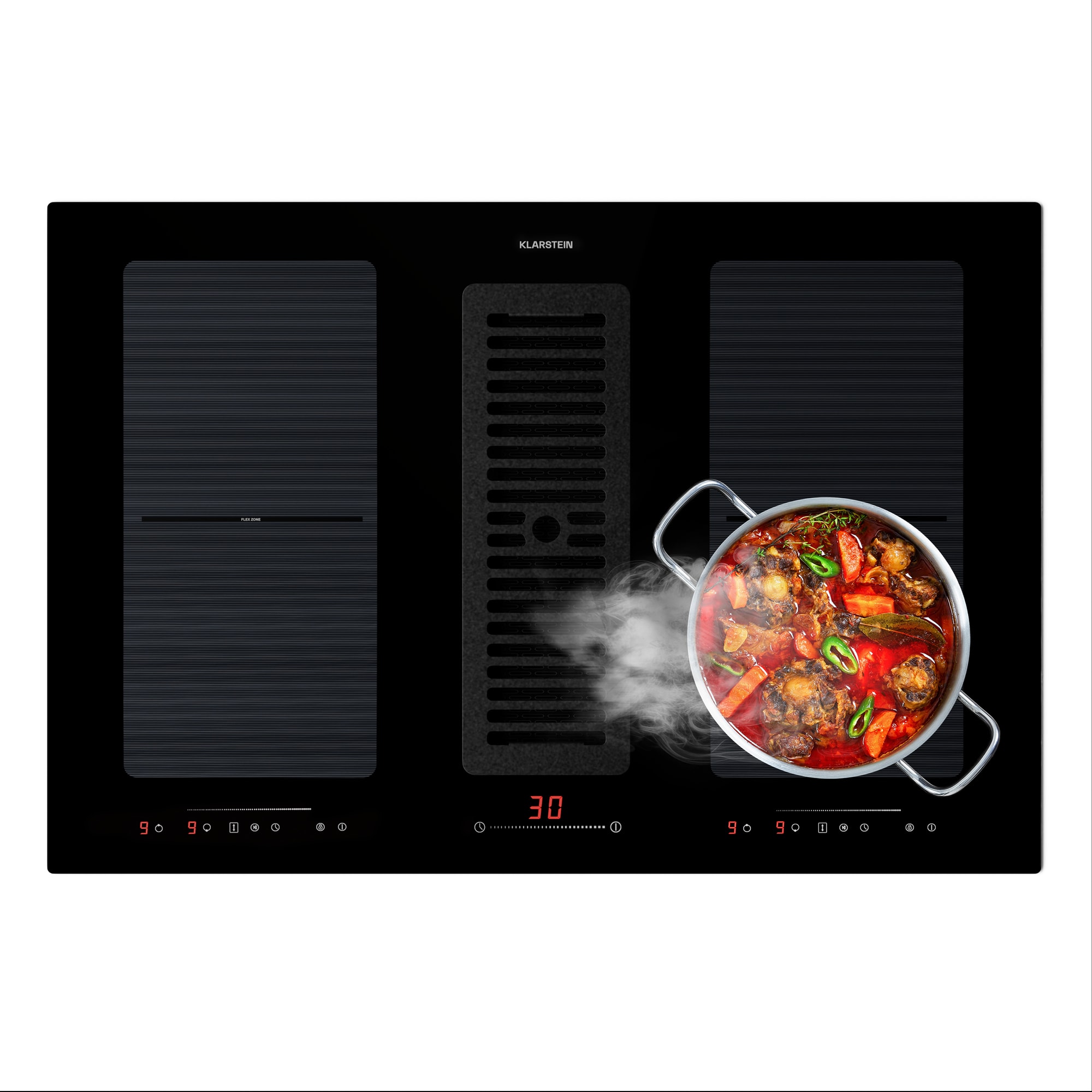 Klarstein Full House 77 Down Air System, indukčná varná doskA digestor, 477 m³/h, EEC A