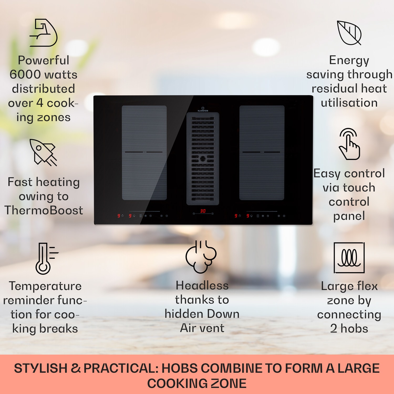 Klarstein Full House Down Air System, indukčná varná doska s odsávaním, 477 m³/h, energet. trieda A