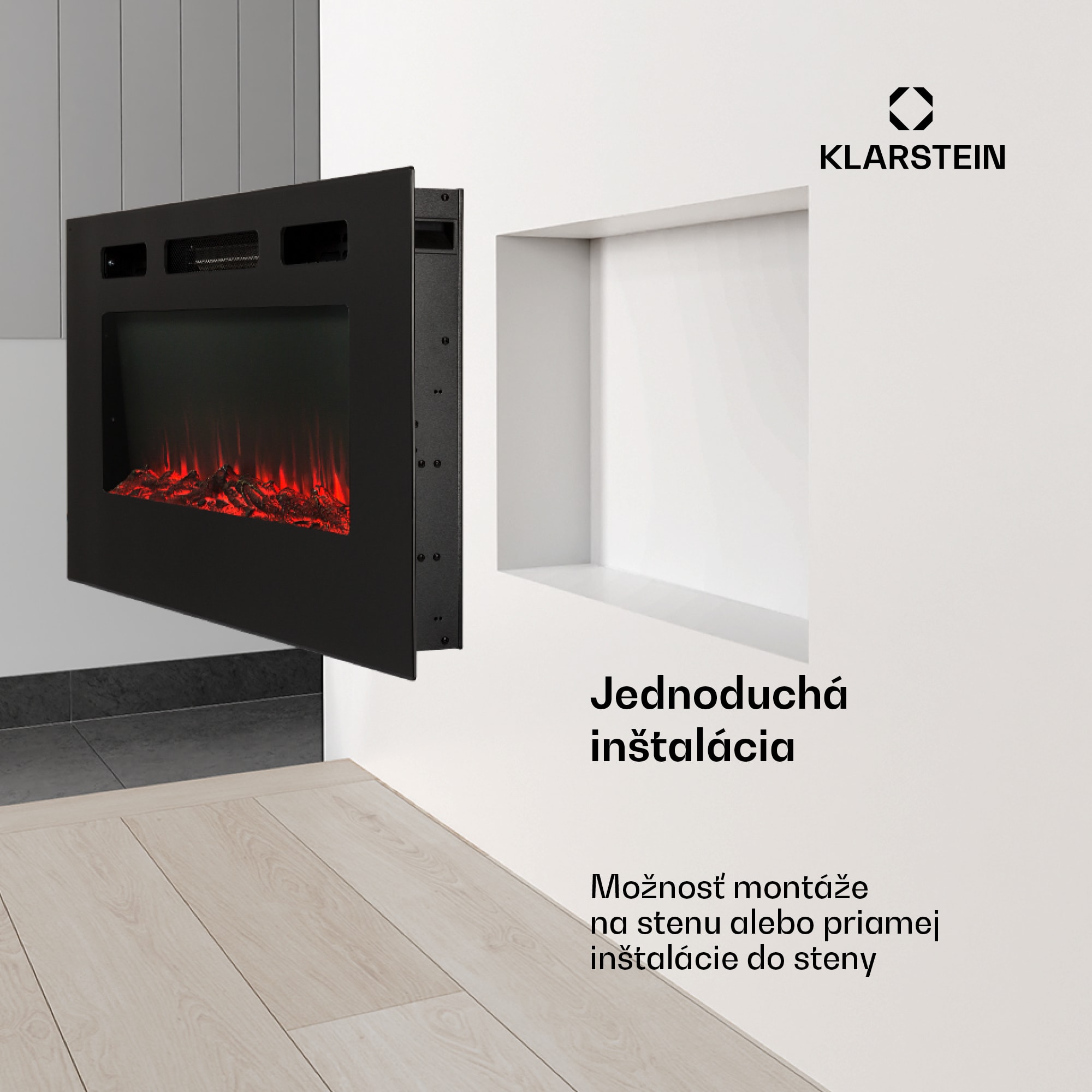 Funkčná dekorácia na stenu trochu iného druhu: s elektrickým krbom Klarstein Galeras obohatíte váš domov o prekrásny a zároveň hrejivý nástenný krb. Elektrické krby na stenu, ako je tento, ponúkajú možnosť stlačením tlačidla na praktickom diaľkovom ovládači nechať plameň krbu žiariť rozličnými farbami i rôznym jasom. Integrovaný termostat, ktorý sa dá nastaviť na 16 až 30 °C, sa postará o príjemnú teplotu. Pomocou programovateľného týždenného časovača môžete nastaviť individuálne časy vyhrievania a nechať sa privítať útulným teplom a inšpiratívnymi farbami. Vďaka svojmu jednoduchému dizajnu sa nástenný, či vstavaný krb Galeras ideálne hodí do každého prostredia.