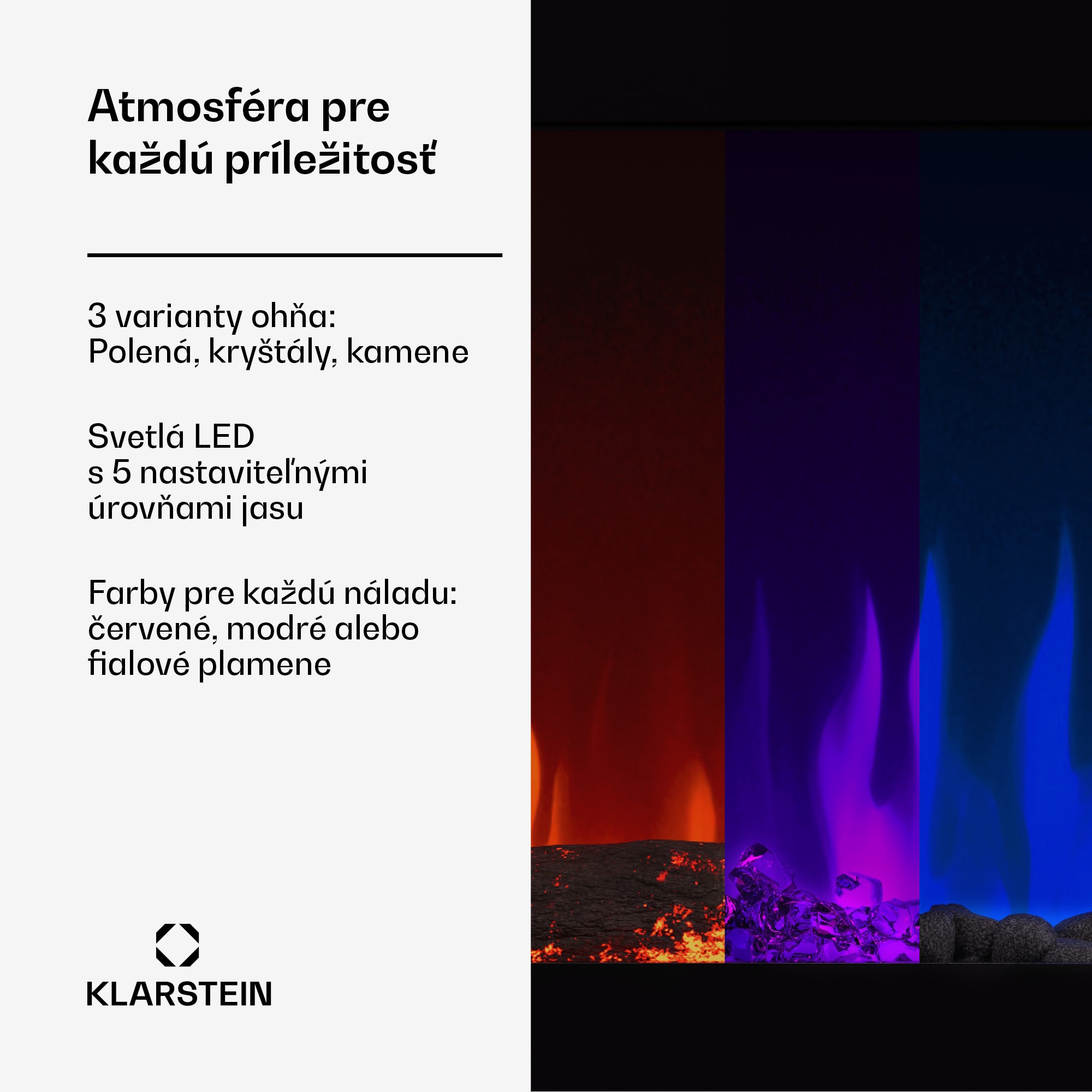 Klarstein Galeras Smart Inteligentný elektrický krb, 2 nastavenia teploty, 16 – 30°| LED ilúzia plameňa, Možnosť pripojenia k IOT – Kúpiť