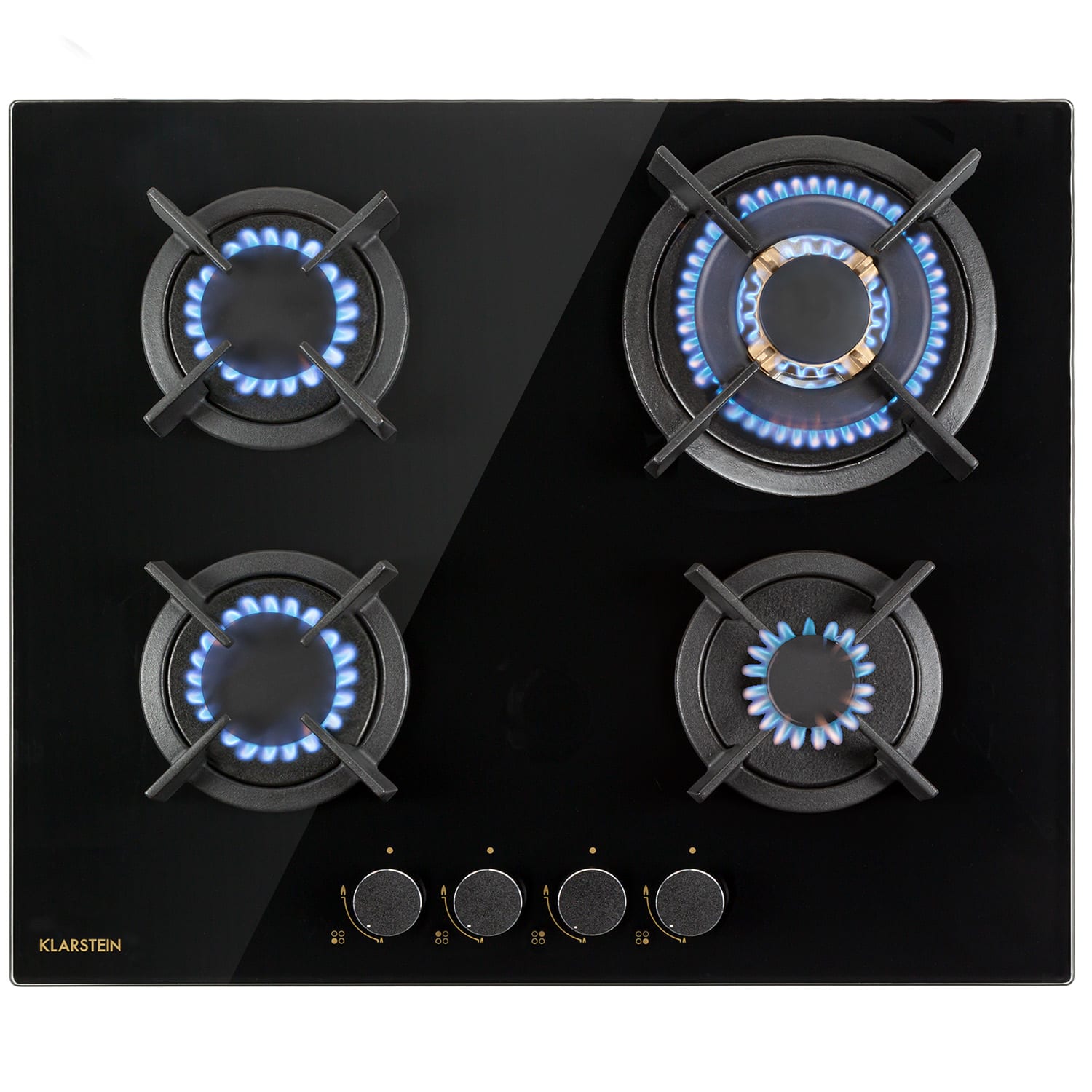 Kto veľa varí, pripravuje jedlá najradšej a najlepšie na plynovom sporáku. Plyn je nielen efektívnejší a šetrnejší k životnému prostrediu, ale je tiež oveľa viac kontrolovateľný, a teda praktickejší ako varenie na elektrine. Plynová varná doska Klarstein Goldflame prináša teraz túto možnosť do každej kuchyne.Na priestorovo úspornej varnej doske Klarstein Goldflame sú štyri kvalitné horáky, ktoré hrejú poriadne s výkonom 3,4 kW, 2 x 1,8 kW a 1,0 kW. Ako už názov napovedá, pre sériu Goldflame sme zvolili veľmi kvalitné mosadzné horáky, pretože nielen elegantne vyzerajú, ale majú aj podstatne dlhšiu životnosť ako bežné hliníkové horáky a zároveň zabezpečujú lepšie rozloženie tepla na varnej doske. Rozdiel, ktorý uvidíš a pocítiš. Všetky horáky distribuujú teplo rovnomerne v strede a na okrajoch hrncov alebo panvíc, všetko je perfektne a optimálne uvarené. Pevná liatinová mriežka je vhodná pre takmer všetky typy kuchynského riadu, je umiestnená presne a bez rizika prevrátenia hrncov. Ovládanie je pritom absolútne intuitívne vďaka zrozumiteľným symbolom na veľkých otočných gombíkoch, prívod tepla sa dá počas procesu varenia vždy prispôsobiť. V tom spočíva veľká výhoda plynových sporákov: zmeny veľkosti plameňa sa bezprostredne prejavia na zmene teploty hrnca alebo panvice. Samozrejme sme venovali pozornosť aj bezpečnosti pri sporáku: dodatočný oheň na zapálenie nie je potrebný. plynový plameň sa jednoducho zapáli pomocou systému zapaľovania SnapJetIgnition. Ochrana pred výpadkom plameňa uzatvorí prívod plynu do horáka, ak by plameň z akéhokoľvek dôvodu zhasol.Po varení je možné v prípade potreby plynovú varnú dosku jednoducho očistiť: kvôli tomu má povrch z ľahko umývateľného, 8 mm hrubého, tvrdeného keramického skla čiernej farby. Nielen že vyzerá neuveriteľne elegantne, úžasne ľahko sa tiež čistí.Efektívne varenie pri nižších nákladoch so všetkými výhodami plynového sporáka: plynová varná doska Goldflame od spoločnosti Klarstein presvedčí nielen amatérskych kuchárov.