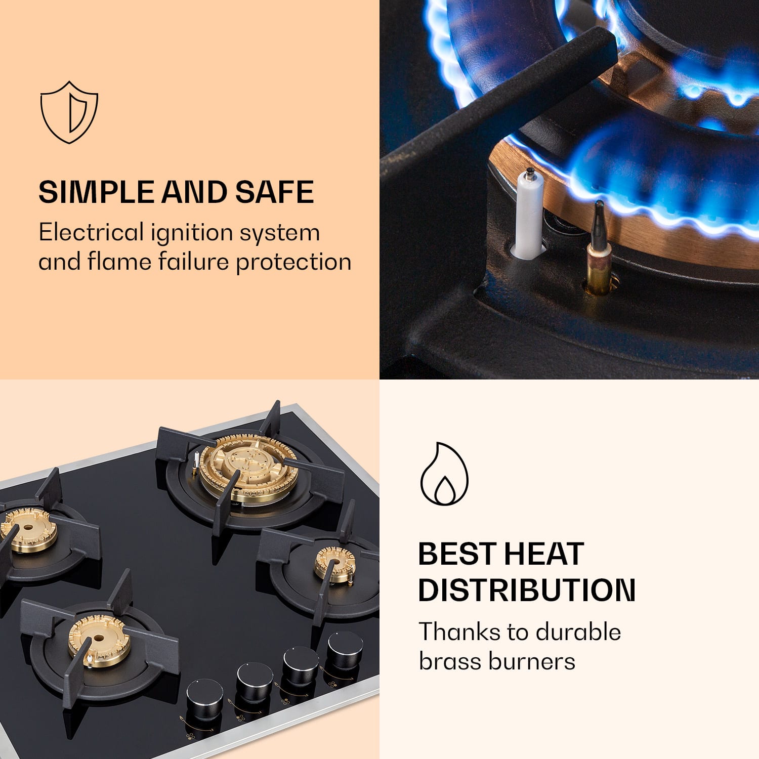 Klarstein Goldflame 4 Prime, plynová varná doska, 4 Messing horáky, sklokeramika – Kúpiť
