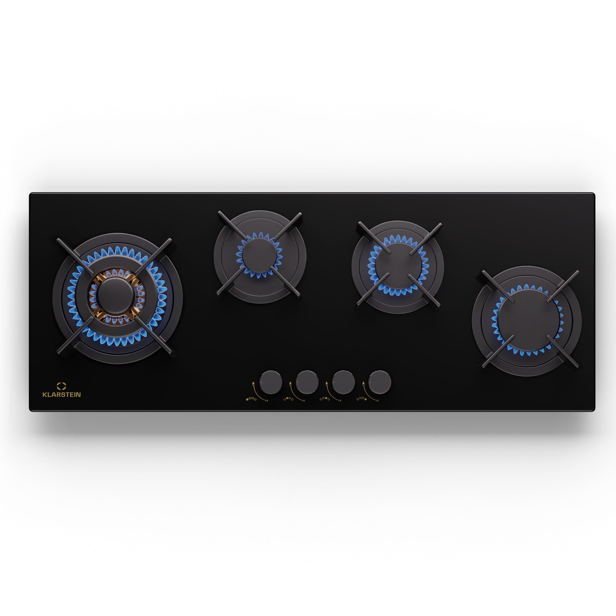 Pre náročných kuchárov Klarstein predstavuje plynovú varnú dosku Goldflame 4 Slim, ktorá spája výhody varenia na plyne s účinnosťou, ovládateľnosťou a šetrnosťou k životnému prostrediu. Vďaka štyrom vysokokvalitným mosadzným horákom (3,4 kW, 2 x 1,8 kW, 1,0 kW) poskytuje priestorovo úsporná varná doska optimálny ohrev. Štíhly dizajn optimalizuje priestor v zadnej časti kuchynskej linky umiestnením horákov vedľa seba. Toto usporiadanie poskytuje pohodlie pri prenášaní hrncov a panvíc a znižuje riziko popálenia. Odolnosť a rovnomerná distribúcia tepla horákov podčiarkujú kvalitné spracovanie. Robustné liatinové rošty zaisťujú stabilné uchytenie rôznych typov kuchynského riadu.Vďaka intuitívnemu ovládaniu pomocou veľkých otočných gombíkov so zrozumiteľnými symbolmi sa obsluhuje bez námahy. Jednou z výhod varenia na plyne je presné nastavenie veľkosti plameňa, ktoré má priamy vplyv na teplotu varenia. Zapaľovanie SnapJet umožňuje elektrické zapaľovanie bez zapaľovača alebo zápaliek. Ochrana proti zlyhaniu plameňa zaisťuje bezpečnosť tým, že automaticky vypne plyn, keď plameň zhasne.Plynová varná doska Klarstein sa po varení ľahko čistí vďaka 8 mm hrubému tvrdenému sklokeramickému povrchu v čiernej farbe – elegantná a ľahko sa čistí.