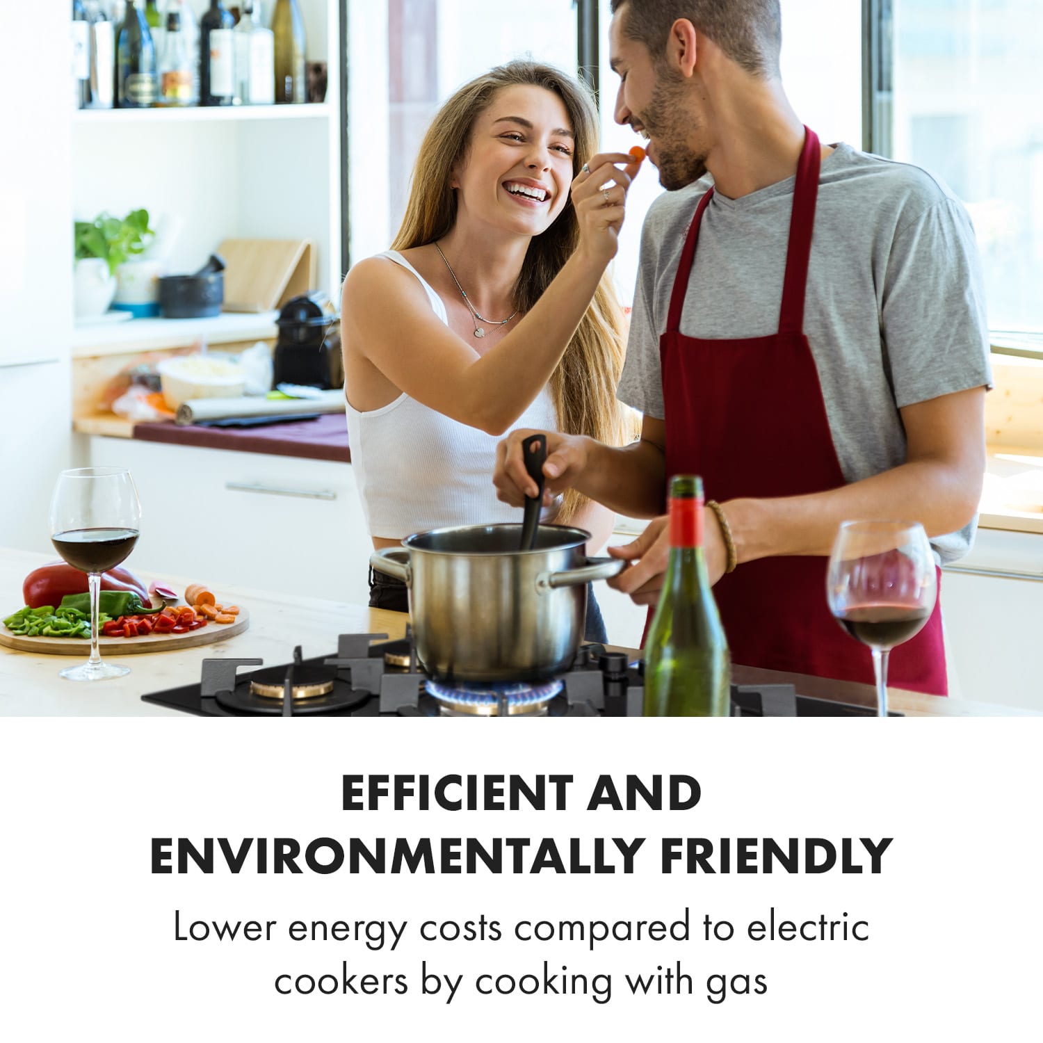 Kto veľa varí, pripravuje jedlá najradšej a najlepšie na plynovom sporáku. Plyn je nielen efektívnejší a šetrnejší k životnému prostrediu, ale je tiež oveľa viac kontrolovateľný, a teda praktickejší ako varenie na elektrine. Plynová varná doska Klarstein Goldflame prináša teraz túto možnosť do každej kuchyne.Na priestorovo úspornej varnej doske Klarstein Goldflame je päť kvalitných horákov, ktoré hrejú poriadne s výkonom 3,4 kW, 2,4 kW, 2 x 1,8 kW a 1,0 kW. Ako už názov napovedá, pre sériu Goldflame sme zvolili veľmi kvalitné mosadzné horáky, pretože nielen elegantne vyzerajú, ale majú aj podstatne dlhšiu životnosť ako bežné hliníkové horáky a zároveň zabezpečujú lepšie rozloženie tepla na varnej doske. Rozdiel, ktorý uvidíš a pocítiš. Všetky horáky distribuujú teplo rovnomerne v strede a na okrajoch hrncov alebo panvíc, všetko je perfektne a optimálne uvarené. Pevná liatinová mriežka je vhodná pre takmer všetky typy kuchynského riadu, je umiestnená presne a bez rizika prevrátenia hrncov. Ovládanie je pritom absolútne intuitívne vďaka zrozumiteľným symbolom na veľkých otočných gombíkoch, prívod tepla sa dá počas procesu varenia vždy prispôsobiť. V tom spočíva veľká výhoda plynových sporákov: zmeny veľkosti plameňa sa bezprostredne prejavia na zmene teploty hrnca alebo panvice. Samozrejme sme venovali pozornosť aj bezpečnosti pri sporáku: dodatočný oheň na zapálenie nie je potrebný. plynový plameň sa jednoducho zapáli pomocou systému zapaľovania SnapJetIgnition. Ochrana pred výpadkom plameňa uzatvorí prívod plynu do horáka, ak by plameň z akéhokoľvek dôvodu zhasol.Po varení je možné v prípade potreby plynovú varnú dosku jednoducho očistiť: kvôli tomu má povrch z ľahko umývateľného, 8 mm hrubého, tvrdeného keramického skla čiernej farby. Nielen že vyzerá neuveriteľne elegantne, úžasne ľahko sa tiež čistí.Efektívne varenie pri nižších nákladoch so všetkými výhodami plynového sporáka: plynová varná doska Goldflame od spoločnosti Klarstein presvedčí nielen amatérskych kuchárov.