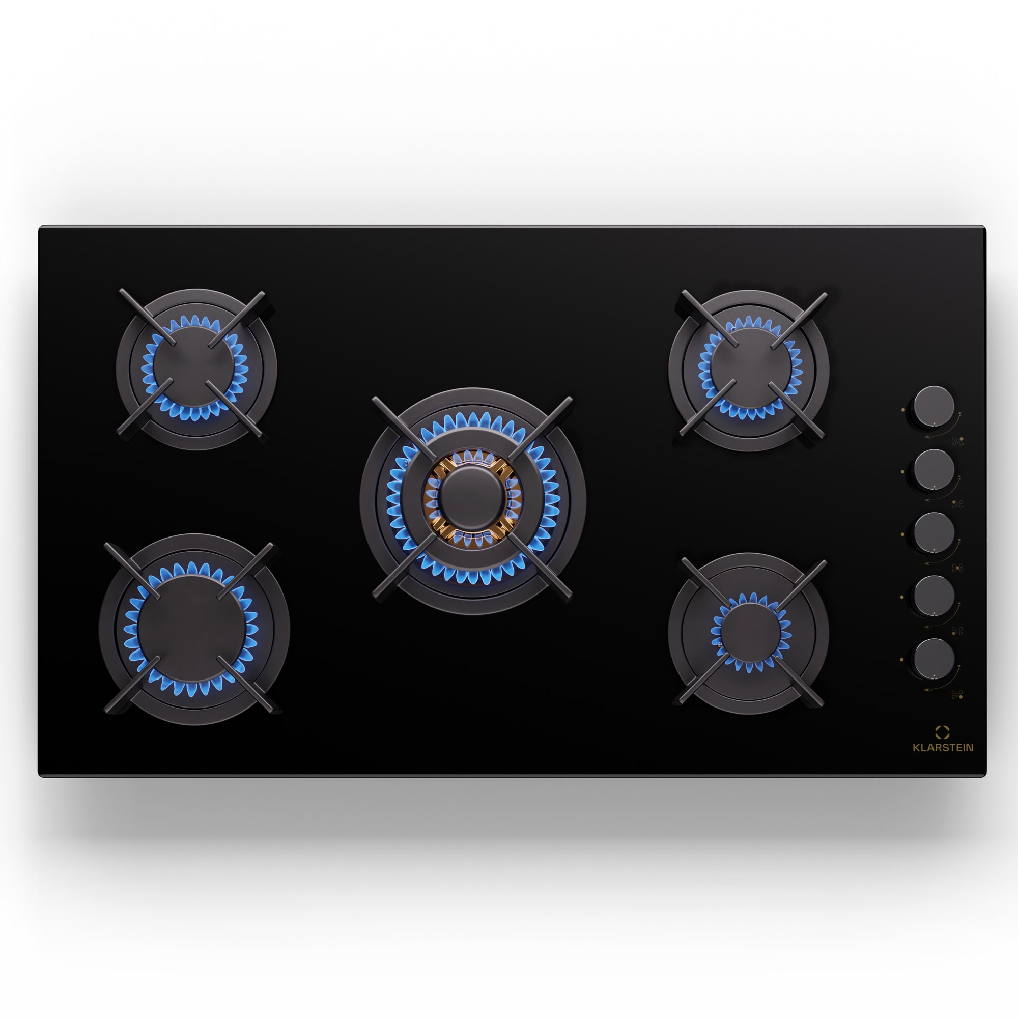 Pre náročných kuchárov Klarstein predstavuje plynovú varnú dosku Goldflame 5, ktorá spája výhody varenia na plyne s účinnosťou, ovládateľnosťou a šetrnosťou k životnému prostrediu. Vďaka piatim vysokokvalitným mosadzným horákom (3,4 kW, 2,4 kW, 2 x 1,8 kW, 1,0 kW) poskytuje priestorovo úsporná varná doska optimálny ohrev. Odolnosť a rovnomerná distribúcia tepla horákov podčiarkujú kvalitné spracovanie. Robustné liatinové rošty zaisťujú stabilné uchytenie rôznych typov kuchynského riadu.Vďaka intuitívnemu ovládaniu pomocou veľkých otočných gombíkov na strane so zrozumiteľnými symbolmi sa obsluhuje bez námahy. Jednou z výhod varenia na plyne je presné nastavenie veľkosti plameňa, ktoré má priamy vplyv na teplotu varenia. Zapaľovanie SnapJet umožňuje elektrické zapaľovanie bez zapaľovača alebo zápaliek. Ochrana proti zlyhaniu plameňa zaisťuje bezpečnosť tým, že automaticky vypne plyn, keď plameň zhasne.Plynová varná doska Klarstein sa po varení ľahko čistí vďaka 8 mm hrubému tvrdenému sklokeramickému povrchu v čiernej farbe – elegantná a ľahko sa čistí.