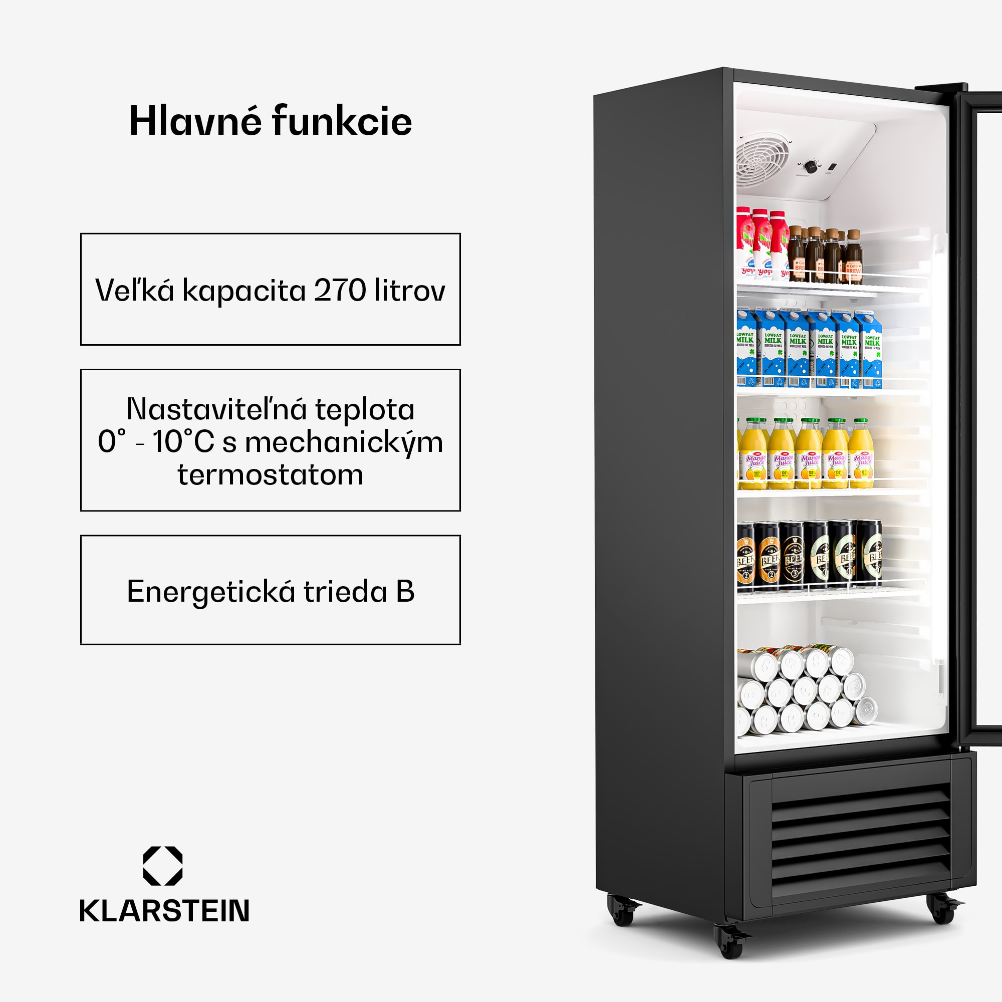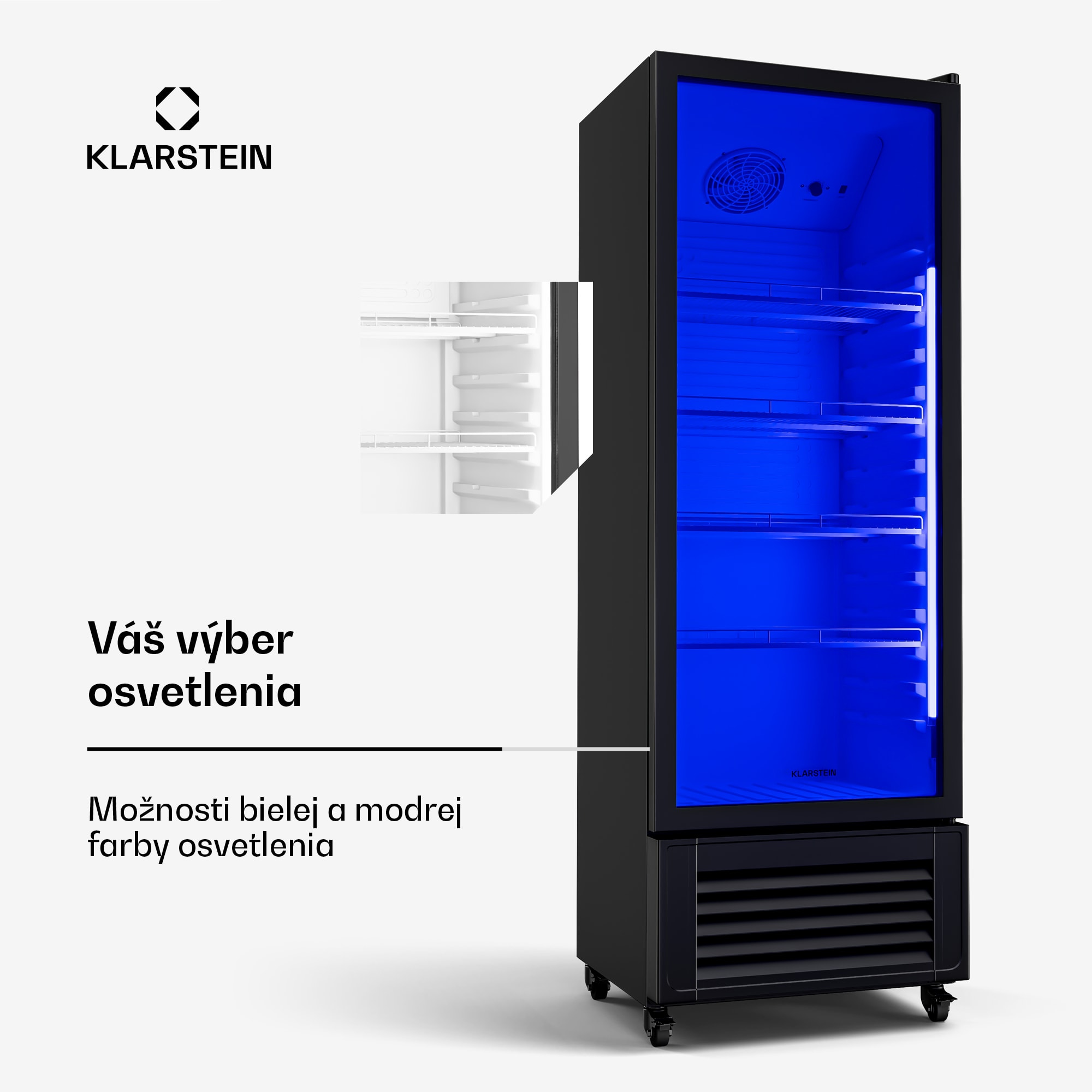 Chladnička na nápoje Klarstein GrandCooler ponúka s objemom 270 litrov dostatok priestoru pre vaše obľúbené nápoje. Vďaka energeticky úspornej triede B a individuálne nastaviteľnej teplote v rozmedzí od 0 do 10 °C zaručuje vždy dokonale vychladené nápoje.Chladnička s elegantným dizajnom, čiernym rámom dverí z PVC a dvojitým sklom v štýlovej čiernej farbe je ideálna na vystavovanie výrobkov alebo na súkromné použitie. Elegantný vzhľad ešte viac podčiarkuje LED osvetlenie v bielej alebo modrej farbe. Chladnička je vybavená štyrmi nastaviteľnými policami s bielym povrchom a hladko sa pohybujúcimi kolieskami, vďaka čomu ju možno bez námahy premiestňovať a používať rôznymi spôsobmi. Použitie ekologického chladiva R600A prispieva k energetickej účinnosti, zatiaľ čo dvere s dvojitým sklom udržujú teplotnú stabilitu a chránia vaše nápoje pred slnečnými lúčmi.Spravte z chladničky na nápoje štýlovú ozdobu! Objednajte si teraz zariadenie Klarstein GrandCooler a zažite dokonalú funkčnosť a dizajn.