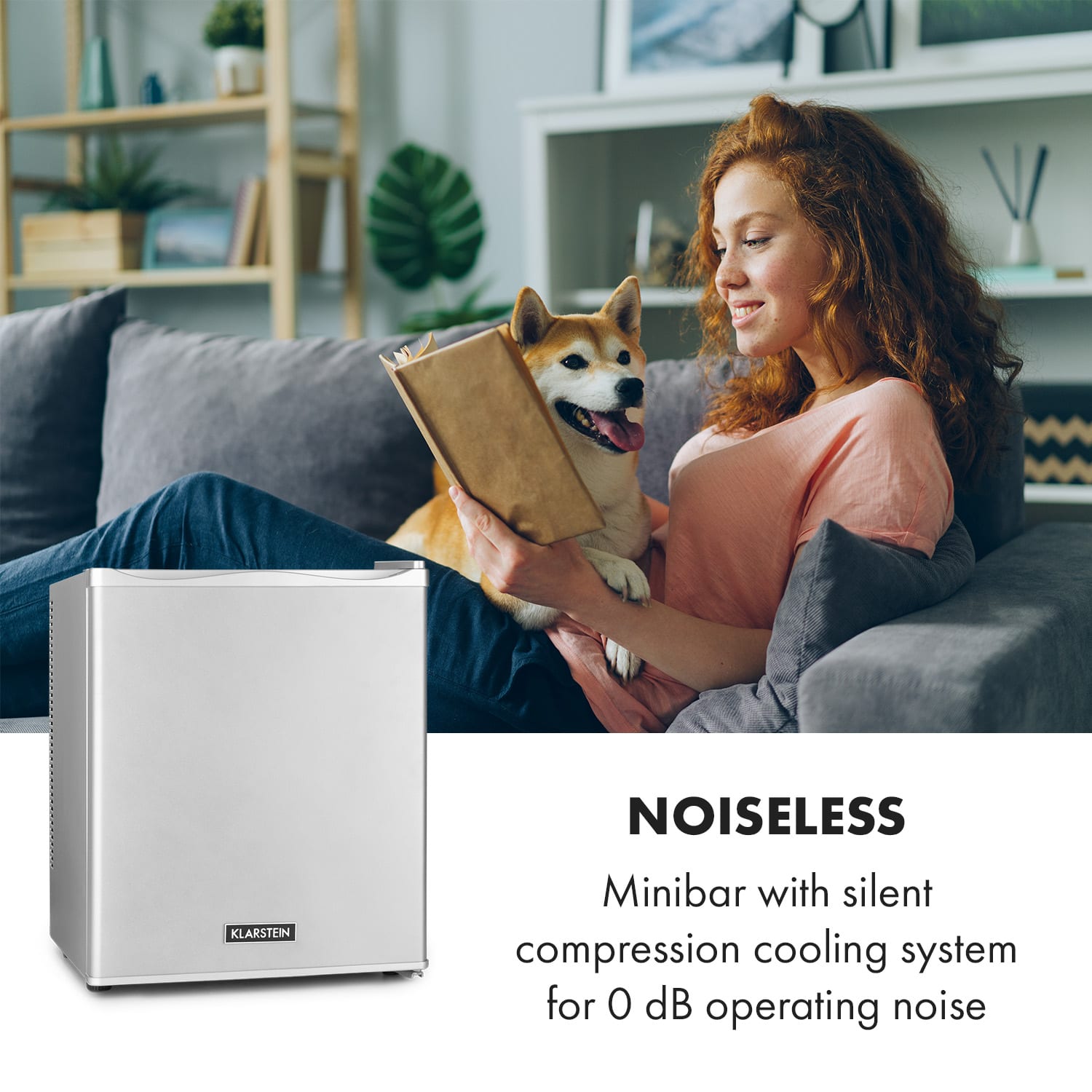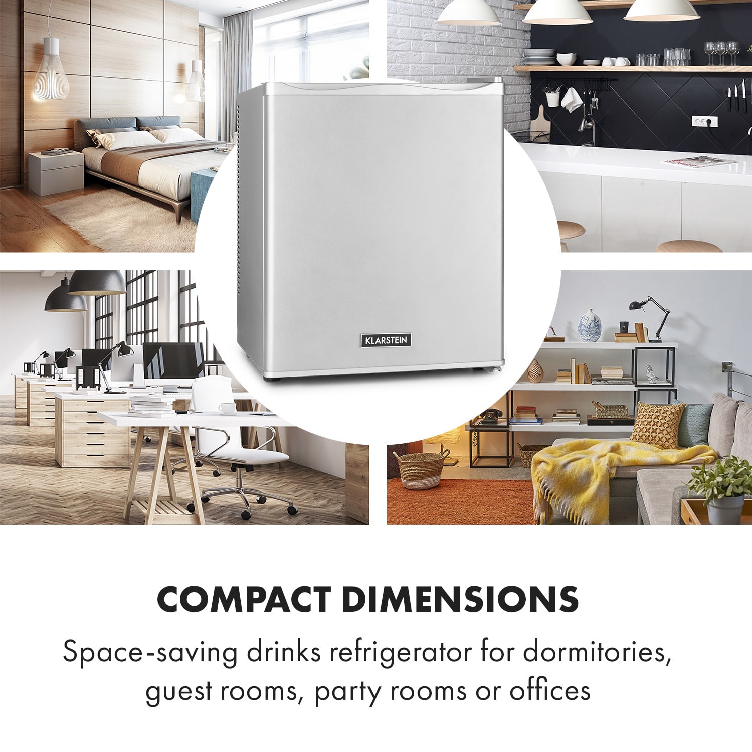Minichladnička Klarstein Happy Hour je kompaktná a takmer nepočuteľná vďaka svojmu najmodernejšiemu chladiacemu systému. Ľahko sa do nej zmestia nápoje alebo občerstvenie a zároveň sa v nej udržiava príjemná osviežujúca teplota. Jej priestranný interiér pojme všetko. Klarstein Happy Hour Minibar môže ľahko plniť svoje chladiace úlohy na miestach, kde je často málo miesta: v hotelových izbách, altánkoch, detských a mládežníckych izbách alebo priamo v domácej párty pivnici. Požadovanú teplotu chladenia v rozmedzí od 5 do 15 °C možno zvoliť pomocou otočného ovládača na zadnej strane.Expert na tiché chladenie: Klarstein Happy Hour chladnička na nápoje poskytuje nápoje a občerstvenie pri osviežujúcich teplotách s nízkou prevádzkovou hlučnosťou.