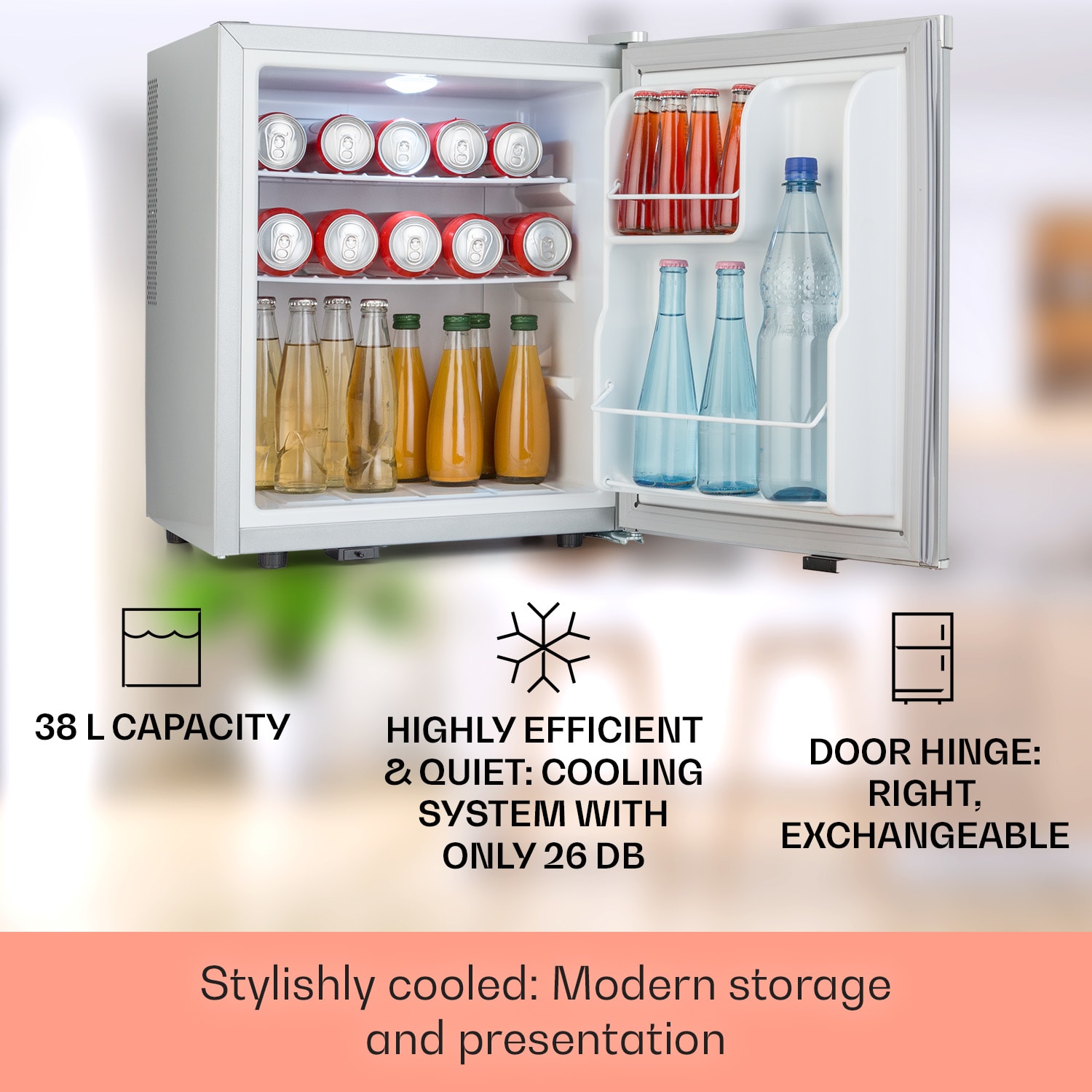 Klarstein Happy Hour 38, mini chladnička, minibar, chladnička na nápoje, 38 l, 26 dB